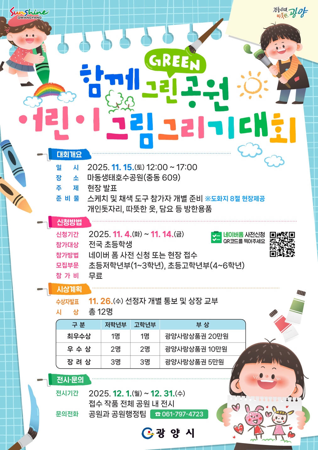 | 7538 | 2025 광양시 「함께 Green 공원」 어린이 그림그리기 대회 개최 | |