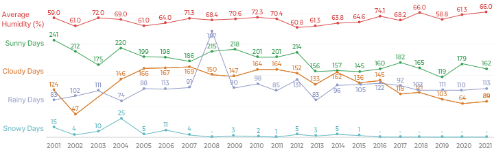 | Number of Cloudy Days | 65 | 124 | 47 | 72 | 146 | 166 | 167 | 169 | 150 | 147 | 164 | 164 | 152 | 133 | 162 | 136 |