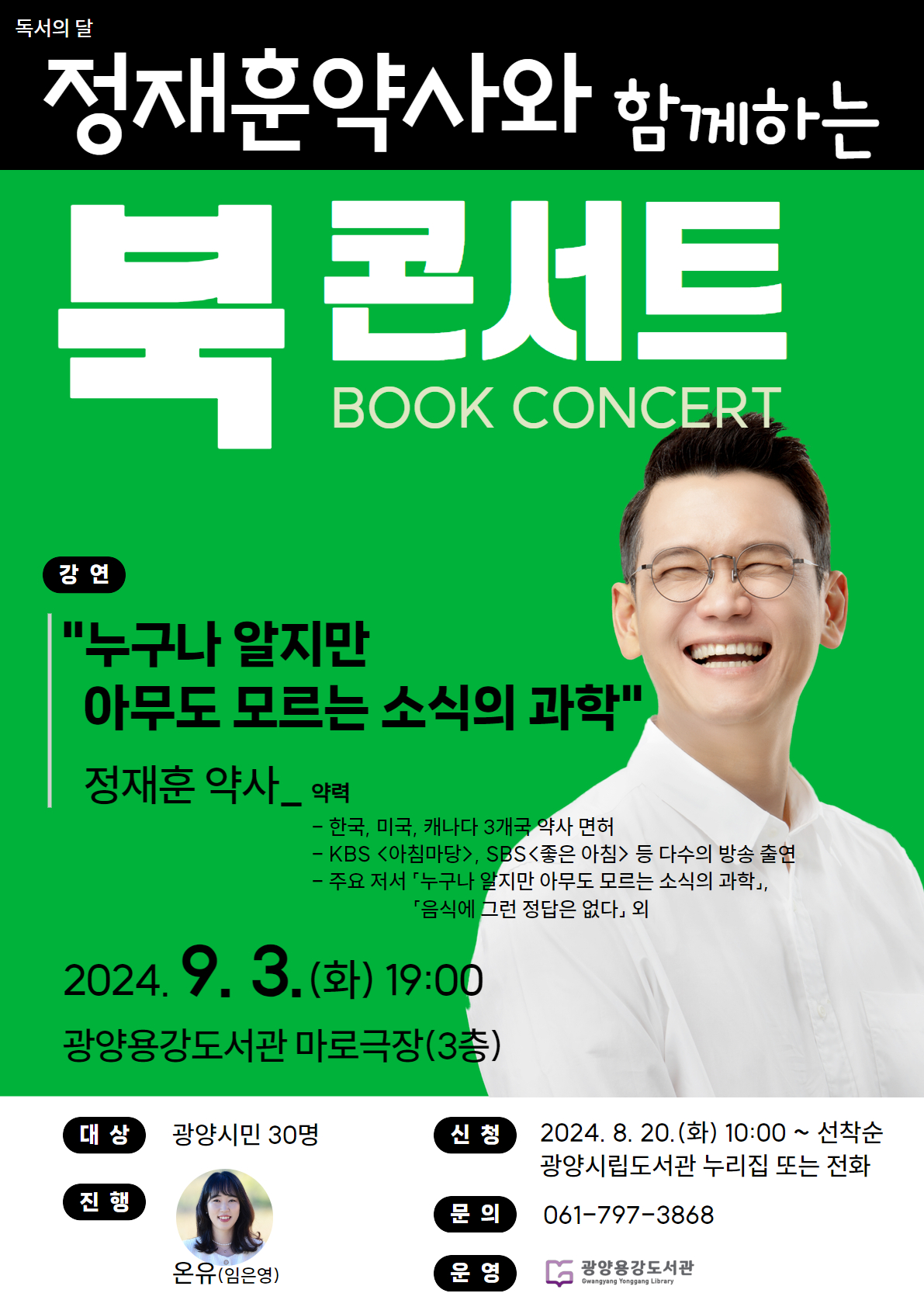 | 6533 | 용강도서관 「정재훈 약사 초청 북콘서트」 신청 안내 | |