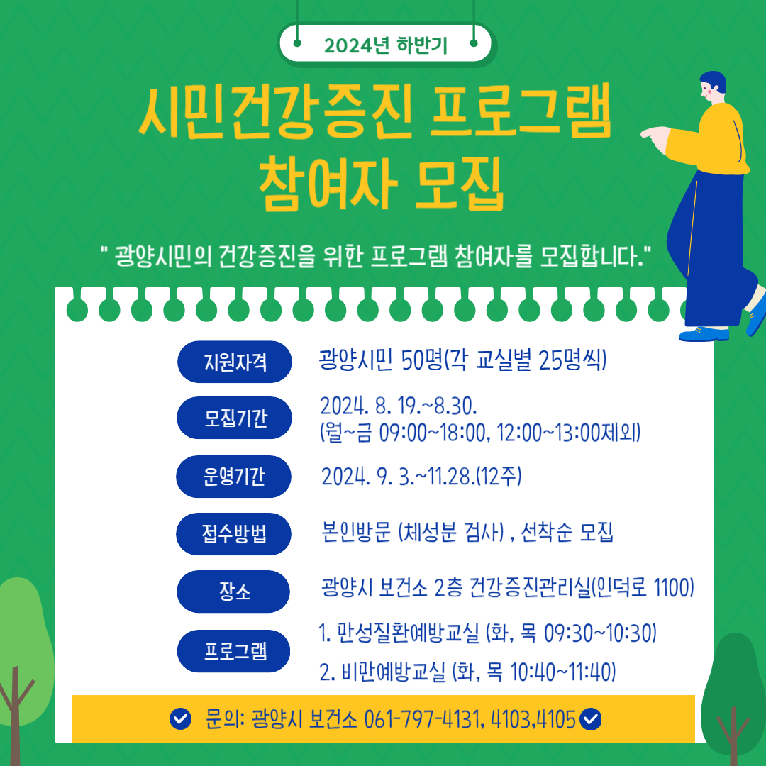 | 6520 | 2024년도 하반기 시민건강증진 프로그램 참여자 모집 | |