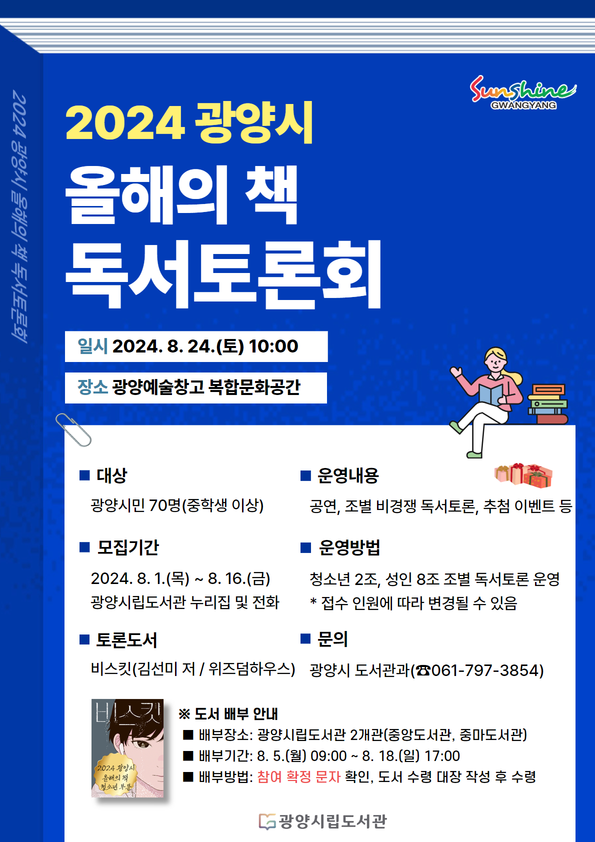 | 6497 | 2024 광양시 '올해의 책' 독서토론회 참여자 모집 | |