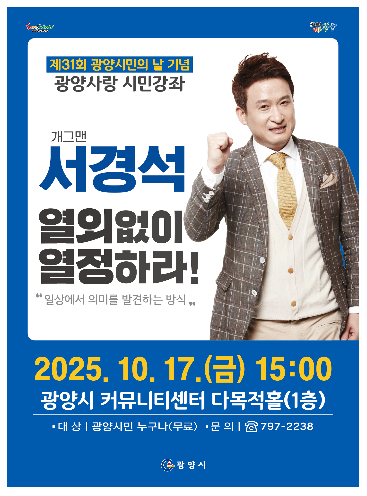 | 7459 | 제31회 광양시민의 날 기념 광양사랑 시민강좌 안내 | |