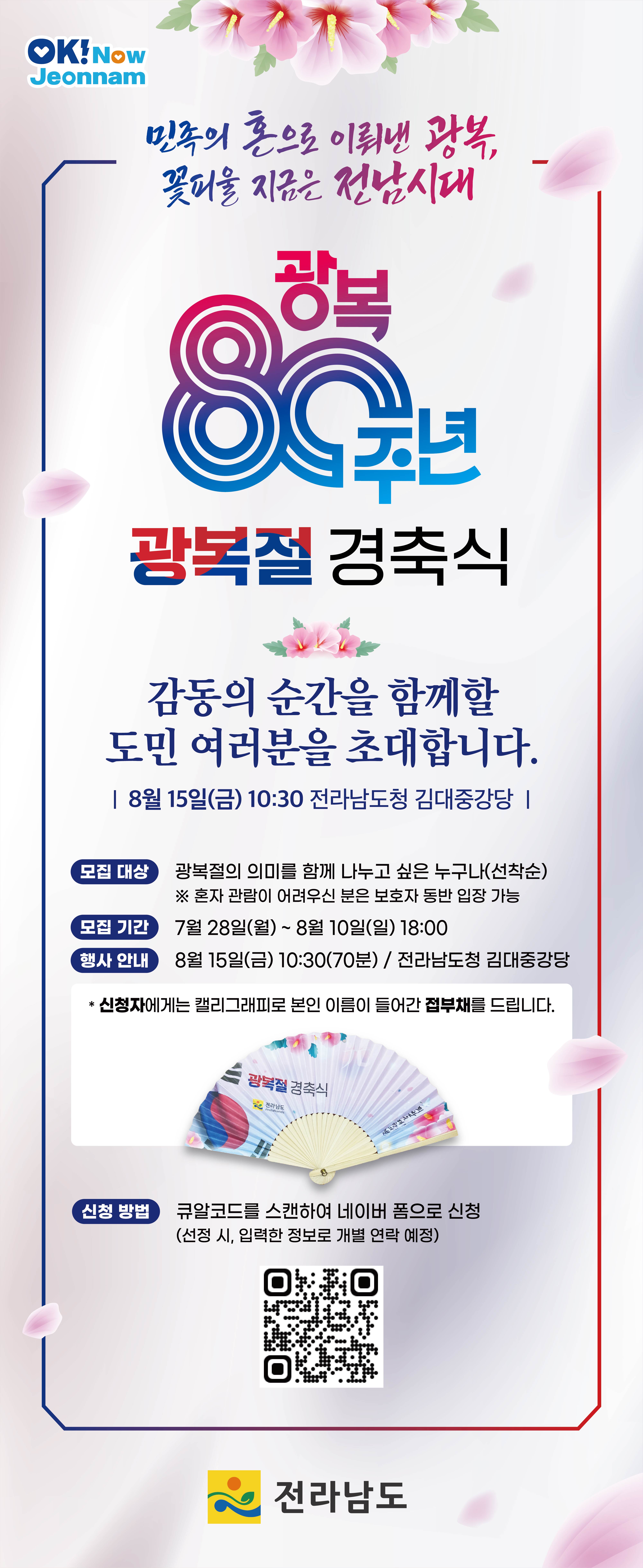 | 7331 | 전라남도「광복 80주년 광복절 경축식」참석자 사전 신청 알림 | |