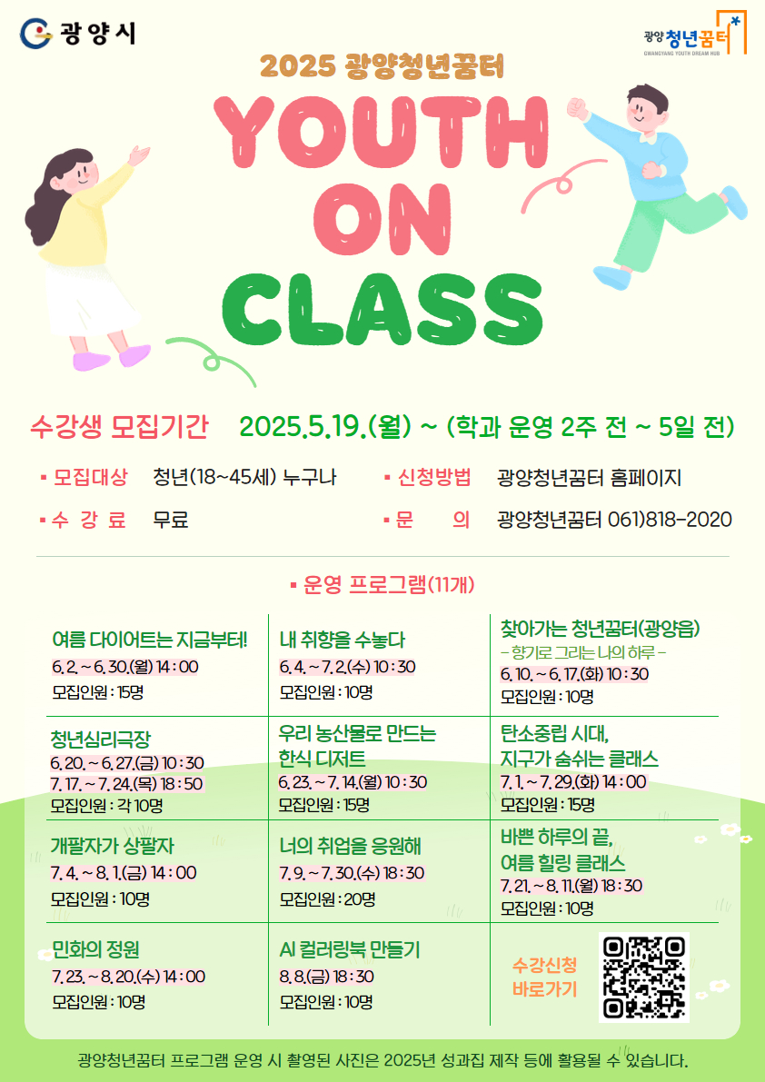 | 7152 | 광양청년꿈터 「유스 온 클래스」 수강생 모집 홍보 | |