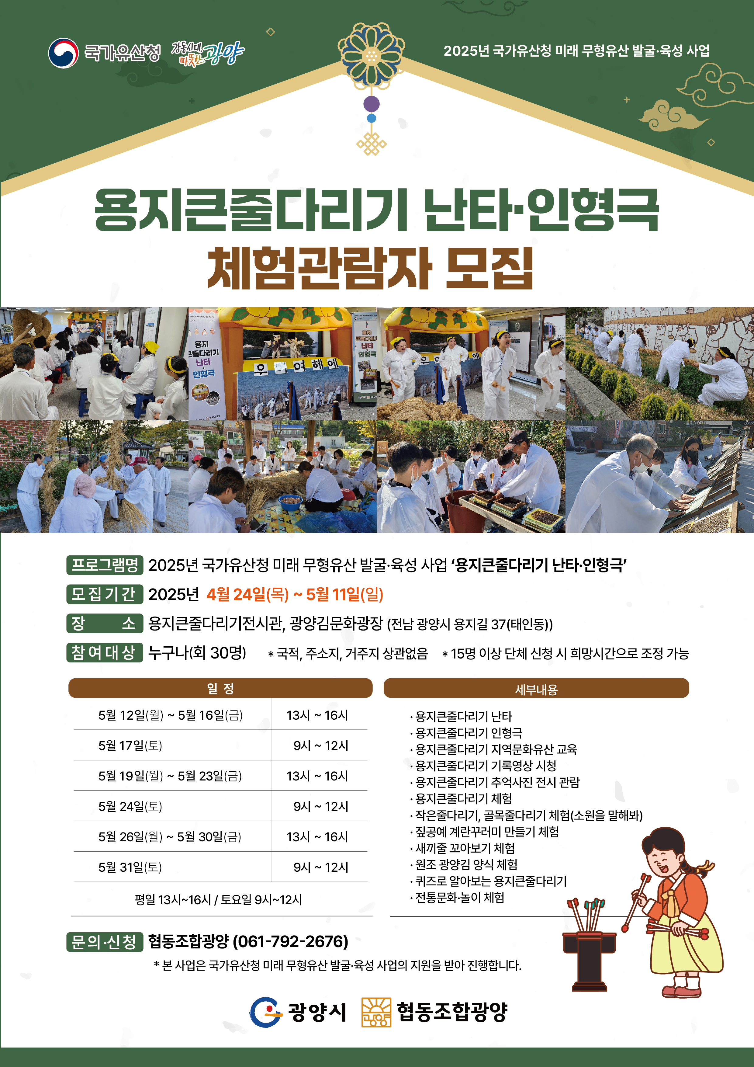 | 7105 | ‘용지큰줄다리기 난타·인형극’ 체험관람자 모집 연장 안내 | |