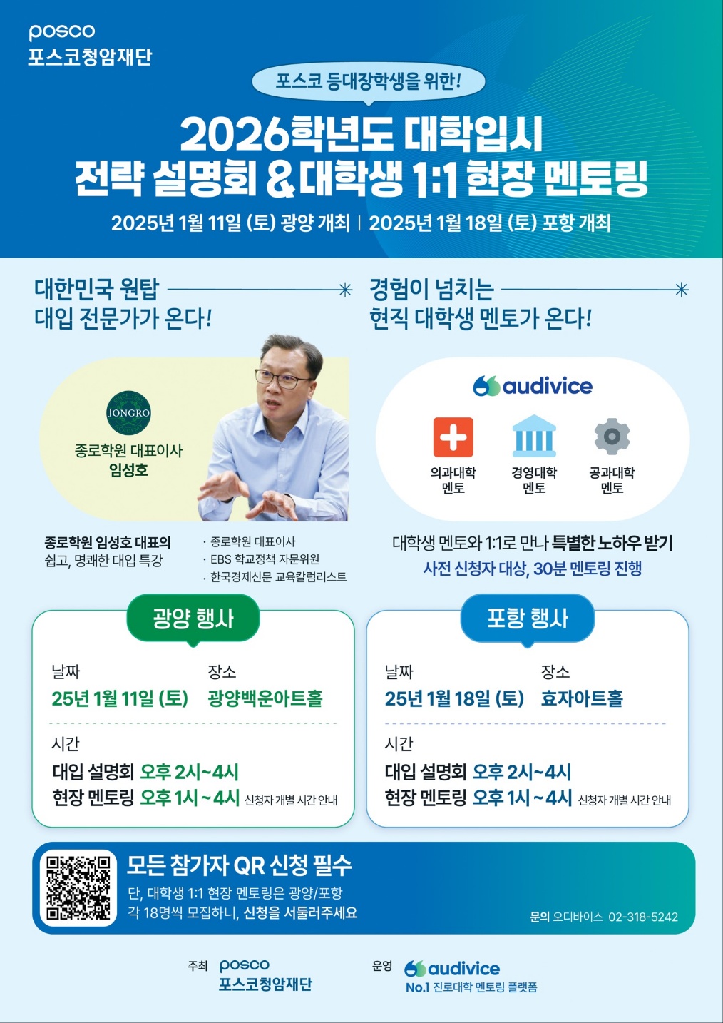 | 6830 | 포스코청암재단 2026학년도 대학입시 전략 설명회 및 대학생 1:1 현장 멘토링 개최 안.. | |