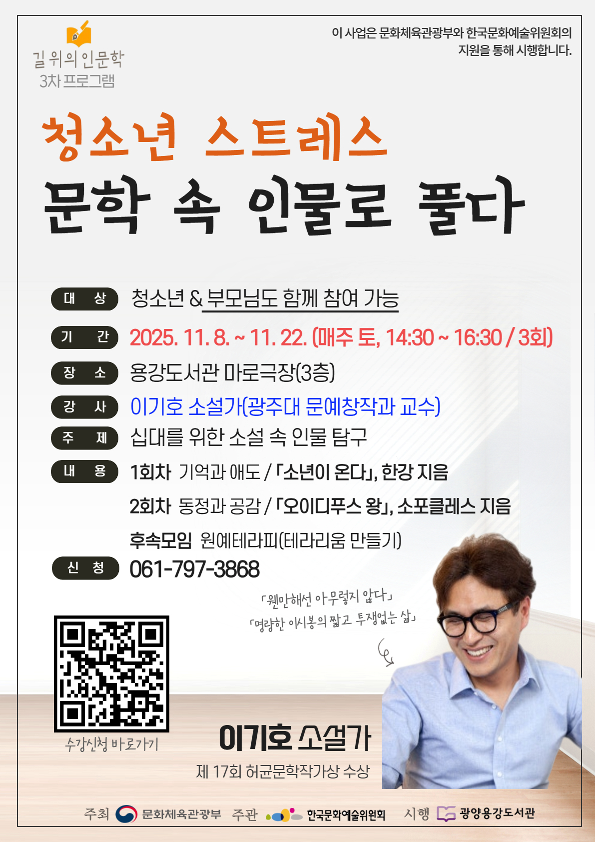 | 7526 | 광양용강도서관 「길 위의 인문학」 3차 프로그램 참여자 모집 안내 | |