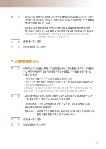 137%ub0b4 %u0009 %uc6a9 %u2022 %ub3c5%uac70%ub178%uc778 %ubc0f %uc7a5%uc560%uc778%uc758 %uac00%uc815%uc5d0 %ub301%ub0b4%uc7a5%ube44*%ub97c %uc124%uce58%ud558%uc5ec %uc751%uae09%uc0c1%ud669 %ubaa8%ub2c8%ud130%ub9c1, %ub300%uc0c1%uc790 %uc548%uc804%ud655%uc778 %ubc0f %ub300%uc751%uc870%uce58, %uc548%uc804%uad50%uc721, %uc0ac%ud6c4%uad00%ub9ac %ub4f1 %ub3c5%uac70%ub178%uc778 %uc7a5%uc560%uc778%uc758 %uc548%uc804%ud55c %uc0dd%ud65c%uc744 %uc9c0%uc6d0%ud558%uae30 %uc704%ud574 %uc81c%uacf5%ub418%ub294 %uc11c%ube44%uc2a4%u2022 %uc751%uae09%ud638%ucd9c%u00b7%ud654%uc7ac%u00b7%ud65c%ub3d9%ub7c9 %ub4f1%uc744 %uac10%uc9c0%ud558%uc5ec %ud574%ub2f9 %uc815%ubcf4%ub97c %uc751%uae09%uc548%uc804%uc548%uc2ec%uc11c%ube44%uc2a4 %uc6b4%uc601 %uc2dc%uc2a4%ud15c%uc5d0 %uc804%uc1a1%ud558%uace0 %uc751%uae09%uc0c1%ud669 %ubc1c%uc0dd %uc2dc %uc2e0%uc18d%ud558%uac8c %uc18c%ubc29%uc11c%uc5d0 %uc2e0%uace0%ud560 %uc218 %uc788%ub3c4%ub85d %uc9c0%uc6d0 * %ub301%ub0b4%uc7a5%ube44 %uad6c%uc131 : %uac8c%uc774%ud2b8%uc6e8%uc774(%ud1b5%uc2e0%ub2e8%ub9d0%uc7a5%uce58/%uc870%ub3c4%u00b7%uc2b5%ub3c4%u00b7%uc628%ub3c4%uac10%uc9c0%uc13c%uc11c %uae30%uacc4), %ud654%uc7ac%uac10%uc9c0%uae30, %uc751%uae09%ud638%ucd9c%uae30, %ud65c%ub3d9%ub7c9%uac10%uc9c0%uae30, %ucd9c%uc785%ubb38%uac10%uc9c0%uae30%ubc29%u0009 %ubc95 %uc74d%u00b7%uba74%u00b7%ub3d9%uc0ac%ubb34%uc18c %uc2e0%uccad%ubb38 %u0009 %uc758 %ub178%uc778%uc7a5%uc560%uc778%uacfc 797-26497. %ub178%uc778%ub9de%ucda4%ub3cc%ubd04%uc11c%ube44%uc2a4%ub300 %u0009 %uc0c1 65%uc138%uc774%uc0c1 %u2460%uae30%ucd08%uc0dd%ud65c%uc218%uae09%uc790, %u2461%ucc28%uc0c1%uc704%uacc4%uce35 %ub610%ub294 %u2462%uae30%ucd08%uc5f0%uae08%uc218%uae09%uc790%ub85c%uc11c %uc720%uc0ac%uc911%ubcf5%uc0ac%uc5c5 %uc790%uaca9%uc5d0 %ud574%ub2f9%ub418%uc9c0 %uc54a%ub294 %uc790(%ub178%uc778%uc7a5%uae30%uc694%uc591%ubcf4%ud5d8%ub4f1%uae09, %uac00%uc0ac%u00b7%uac04%ubcd1 %ubc29%ubb38%uc9c0%uc6d0%uc0ac%uc5c5 %uc774%uc6a9%uc790 %ub4f1 %uc81c%uc678)%u00bb %ub3c5%uac70%u00b7%uc870%uc190%u00b7%uace0%ub839%ubd80%ubd80 %uac00%uad6c %ub178%uc778 %ub4f1 %ub3cc%ubd04%uc774 %ud544%uc694%ud55c %ub178%uc778 %u00bb %uc2e0%uccb4%uc801 %uae30%ub2a5 %uc800%ud558, %uc815%uc2e0%uc801 %uc5b4%ub824%uc6c0(%uc778%uc9c0%uc800%ud558, %uc6b0%uc6b8%uac10 %ub4f1) %ub4f1%uc73c%ub85c %ub3cc%ubd04%uc774 %ud544%uc694%ud55c %ub178%uc778%u00bb %uace0%ub3c5%uc0ac %ubc0f %uc790%uc0b4 %uc704%ud5d8%uc774 %ub192%uc740 %ub178%uc778%u203b%uc911%uc810 %ub3cc%ubd04%uad70 - %uc6d4 20%uc2dc%uac04 %uc774%uc0c1 40%uc2dc%uac04 %ubbf8%ub9cc %uc9c1%uc811%uc11c%ube44%uc2a4 %ubc0f %uc8fc%uae30%uc801%uc778 %uac00%uc0ac%uc9c0%uc6d0%uc11c%ube44%uc2a4 %uc81c%uacf5 %uac00%ub2a5%u203b%uc77c%ubc18 %ub3cc%ubd04%uad70 - %uc6d4 16%uc2dc%uac04 %ubbf8%ub9cc %uc9c1%uc811%uc11c%ube44%uc2a4 %uc81c%uacf5, %uc8fc%uae30%uc801%uc778 %uac00%uc0ac%uc9c0%uc6d0%uc11c%ube44%uc2a4%ub294 %uc81c%uacf5 %ubd88%uac00%ub0b4%u0009 %uc6a9 %u2022 %uc77c%uc0c1%uc0dd%ud65c %uc601%uc704%uac00 %uc5b4%ub824%uc6b4 %ucde8%uc57d%ub178%uc778%uc5d0%uac8c %uc801%uc808%ud55c %ub3cc%ubd04%uc11c%ube44%uc2a4%ub97c %uc81c%uacf5%ud558%uc5ec %uc548%uc815%uc801%uc778 %ub178%ud6c4 %uc0dd%ud65c %ubcf4%uc7a5, %ub178%uc778%uc758 %uae30%ub2a5%u00b7%uac74%uac15 %uc720%uc9c0 %ubc0f %uc545%ud654 %uc608%ubc29%u2022 %uc548%uc804%uc9c0%uc6d0(%ubc29%ubb38, %uc804%ud654), %uc0ac%ud68c%ucc38%uc5ec(%uc790%uc870%ubaa8%uc784, %ud504%ub85c%uadf8%ub7a8), %uc0dd%ud65c%uad50%uc721(%uc2e0%uccb4, %uac74%uac15), %uc77c%uc0c1%uc0dd%ud65c%uc9c0%uc6d0(%uac00%uc0ac), %uc790%uc6d0%uc5f0%uacc4%u2022 %ud2b9%ud654 %uc11c%ube44%uc2a4 : %uc0ac%ud68c%uc801 %uace0%ub9bd%uacfc %uc6b0%uc6b8 %uc704%ud5d8%uc774 %ub192%uc740 %ucde8%uc57d%ub178%uc778%uc744 %ub300%uc0c1%uc73c%ub85c %ub9de%ucda4%ud615 %uc0ac%ub840%uad00%ub9ac %uc81c%uacf5%uc744 %ud1b5%ud55c %uace0%ub3c5%uc0ac %ubc0f %uc790%uc0b4%uc608%ubc29%uc11c%ube44%uc2a4%ubc29 %u0009 %ubc95 %uc74d%u00b7%uba74%u00b7%ub3d9%uc0ac%ubb34%uc18c %uc2e0%uccad%ubb38%u0009 %uc758 %ub178%uc778%uc7a5%uc560%uc778%uacfc 797-2649