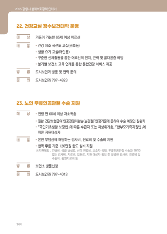 2025 %uad11%uc591%uc2dc %uc0dd%uc560%ubcf5%uc9c0%uc815%ucc45 %uc548%ub0b4%uc11c14422. %uac74%uac15%uad50%uc2e4 %uc7a5%uc218%ubcf4%uac74%ub300%ud559 %uc6b4%uc601%ub300 %u0009 %uc0c1 %uac70%ub3d9%uc774 %uac00%ub2a5%ud55c 65%uc138 %uc774%uc0c1 %uc5b4%ub974%uc2e0%ub0b4 %u0009 %uc6a9 %u2022 %uac74%uac15 %uccb4%uc870 %uad6d%uc120%ub3c4 %uad50%uc2e4(%uae08%ud638%ub3d9)%u2022 %uc0dd%ud65c %uc694%uac00 %uad50%uc2e4(%ud0dc%uc778%ub3d9)%u2022 %uafb8%uc900%ud55c %uc2e0%uccb4%ud65c%ub3d9%uc744 %ud1b5%ud55c %uc5b4%ub974%uc2e0%uc758 %uc778%uc9c0, %uadfc%ub825 %ubc0f %uace8%ub2e4%uacf5%uc99d %uc608%ubc29%u2022 %ubd84%uae30%ubcc4 %ubcf4%uac74%uc18c %uad50%uc721 %uc5f0%uacc4%ub97c %ud1b5%ud55c %ud1b5%ud569%uac74%uac15 %uc11c%ube44%uc2a4 %uc81c%uacf5%ubc29%u0009 %ubc95 %ub3c4%uc2dc%ubcf4%uac74%uacfc %ubc29%ubb38 %ubc0f %uc5f0%ub77d %ubb38%uc758%ubb38 %u0009 %uc758 %ub3c4%uc2dc%ubcf4%uac74%uacfc 797-482323. %ub178%uc778 %ubb34%ub98e%uc778%uacf5%uad00%uc808 %uc218%uc220 %uc9c0%uc6d0%ub300 %u0009 %uc0c1 %u2022 %uc5f0%ub839 %ub9cc 60%uc138 %uc774%uc0c1 %uc800%uc18c%ub4dd%uce35%u2022 %uc9c8%ud658 %uac74%uac15%ubcf4%ud5d8%uae09%uc5ec%u2018%uc778%uacf5%uad00%uc808%uce58%ud658%uc220(%uc2ac%uad00%uc808)%u2019%uc778%uc815%uae30%uc900%uc5d0 %uc900%ud558%uc5ec %uc218%uc220 %uc608%uc815%uc778 %uc9c8%ud658%uc790%u2022 %u300c%uad6d%ubbfc%uae30%ucd08%uc0dd%ud65c %ubcf4%uc7a5%ubc95%u300d%uc5d0 %ub530%ub978 %uc218%uae09%uc790 %ub610%ub294 %ucc28%uc0c1%uc704%uacc4%uce35, %u300c%ud55c%ubd80%ubaa8%uac00%uc871%uc9c0%uc6d0%ubc95%u300d%uc5d0 %ub530%ub978 %uc9c0%uc6d0%ub300%uc0c1%uc790%ub0b4%u0009 %uc6a9 %u2022 %ubcf8%uc778 %ubd80%ub2f4%uae08%uc5d0 %ud574%ub2f9%ud558%ub294 %uac80%uc0ac%ube44, %uc9c4%ub8cc%ube44 %ubc0f %uc218%uc220%ube44 %uc9c0%uc6d0%u2022 %ud55c%ucabd %ubb34%ub98e %uae30%uc900 120%ub9cc%uc6d0 %ud55c%ub3c4 %uc2e4%ube44 %uc9c0%uc6d0%u203b%uc9c0%uc6d0%uc81c%uc678 : %uac04%ubcd1%ube44, %uc0c1%uae09 %ubcd1%uc2e4%ub8cc, %uc120%ud0dd %uc9c4%ub8cc%ube44, %ubcf4%ud638%uc790 %uc2dd%ub300, %ubb34%ub98e%uc778%uacf5%uad00%uc808 %uc218%uc220%uacfc %uad00%ub828%uc774 %uc5c6%ub294 %uac80%uc0ac%ube44, %uce58%ub8cc%ube44, %uc785%uc6d0%ub8cc, %uc9c0%uc6d0 %ub300%uc0c1%uc790 %ud1b5%ubcf4 %uc804 %ubc1c%uc0dd%ud55c %uac80%uc0ac%ube44, %uc9c4%ub8cc%ube44 %ubc0f %uc218%uc220%ube44, %ud1b5%uc6d0%uce58%ub8cc%ube44 %ub4f1%ubc29 %u0009 %ubc95 %ubcf4%uac74%uc18c %ubc29%ubb38%uc2e0%uccad%ubb38 %u0009 %uc758 %ub3c4%uc2dc%ubcf4%uac74%uacfc 797-4013
