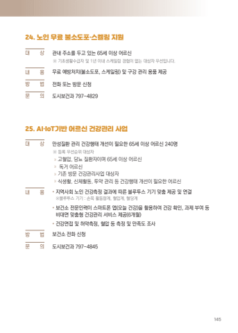 14524. %ub178%uc778 %ubb34%ub8cc %ubd88%uc18c%ub3c4%ud3ec%u00b7%uc2a4%ucf08%ub9c1 %uc9c0%uc6d0%ub300 %u0009 %uc0c1 %uad00%ub0b4 %uc8fc%uc18c%ub97c %ub450%uace0 %uc788%ub294 65%uc138 %uc774%uc0c1 %uc5b4%ub974%uc2e0%u203b %uae30%ucd08%uc0dd%ud65c%uc218%uae09%uc790 %ubc0f 1%ub144 %uc774%ub0b4 %uc2a4%ucf00%uc77c%ub9c1 %uacbd%ud5d8%uc774 %uc5c6%ub294 %ub300%uc0c1%uc790 %uc6b0%uc120%uc785%ub2c8%ub2e4.%ub0b4%u0009 %uc6a9 %ubb34%ub8cc %uc608%ubc29%ucc98%uce58(%ubd88%uc18c%ub3c4%ud3ec, %uc2a4%ucf00%uc77c%ub9c1) %ubc0f %uad6c%uac15 %uad00%ub9ac %uc6a9%ud488 %uc81c%uacf5%ubc29%u0009 %ubc95 %uc804%ud654 %ub610%ub294 %ubc29%ubb38 %uc2e0%uccad%ubb38 %u0009 %uc758 %ub3c4%uc2dc%ubcf4%uac74%uacfc 797-482925. AI%u00b7IoT%uae30%ubc18 %uc5b4%ub974%uc2e0 %uac74%uac15%uad00%ub9ac %uc0ac%uc5c5 %ub300%u0009 %uc0c1 %ub9cc%uc131%uc9c8%ud658 %uad00%ub9ac %uac74%uac15%ud589%ud0dc %uac1c%uc120%uc774 %ud544%uc694%ud55c 65%uc138 %uc774%uc0c1 %uc5b4%ub974%uc2e0 240%uba85%u203b %ub4f1%ub85d %uc6b0%uc120%uc21c%uc704 %ub300%uc0c1%uc790%u00bb %uace0%ud608%uc555, %ub2f9%ub1e8 %uc9c8%ud658%uc790%uc774%uba70 65%uc138 %uc774%uc0c1 %uc5b4%ub974%uc2e0%u00bb %ub3c5%uac70 %uc5b4%ub974%uc2e0%u00bb %uae30%uc874 %ubc29%ubb38 %uac74%uac15%uad00%ub9ac%uc0ac%uc5c5 %ub300%uc0c1%uc790 %u00bb %uc2dd%uc0dd%ud65c, %uc2e0%uccb4%ud65c%ub3d9, %ud22c%uc57d %uad00%ub9ac %ub4f1 %uac74%uac15%ud589%ud0dc %uac1c%uc120%uc774 %ud544%uc694%ud55c %uc5b4%ub974%uc2e0%ub0b4 %u0009 %uc6a9 %u2022 %uc9c0%uc5ed%uc0ac%ud68c %ub178%uc778 %uac74%uac15%uce21%uc815 %uacb0%uacfc%uc5d0 %ub530%ub978 %ube14%ub8e8%ud22c%uc2a4 %uae30%uae30 %ub9de%ucda4 %uc81c%uacf5 %ubc0f %uc5f0%uacb0%u203b%ube14%ub8e8%ud22c%uc2a4 %uae30%uae30 : %uc190%ubaa9 %ud65c%ub3d9%ub7c9%uacc4, %ud608%uc555%uacc4, %ud608%ub2f9%uacc4%u2022 %ubcf4%uac74%uc18c %uc804%ubb38%uc778%ub825%uc774 %uc2a4%ub9c8%ud2b8%ud3f0 %uc571(%uc624%ub298 %uac74%uac15)%uc744 %ud65c%uc6a9%ud558%uc5ec %uac74%uac15 %ud655%uc778, %uacfc%uc81c %ubd80%uc5ec %ub4f1 %ube44%ub300%uba74 %ub9de%ucda4%ud615 %uac74%uac15%uad00%ub9ac %uc11c%ube44%uc2a4 %uc81c%uacf5(6%uac1c%uc6d4)%u2022 %uac74%uac15%uba74%uc811 %ubc0f %ud5c8%uc57d%uce21%uc815, %ud608%uc555 %ub4f1 %uce21%uc815 %ubc0f %ub9cc%uc871%ub3c4 %uc870%uc0ac%ubc29%u0009 %ubc95 %ubcf4%uac74%uc18c %uc804%ud654 %uc2e0%uccad %ubb38%u0009 %uc758 %ub3c4%uc2dc%ubcf4%uac74%uacfc 797-4845