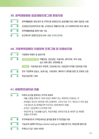 17539. %uad8c%uc5ed%uc7ac%ud65c%ubcd1%uc6d0 %uacf5%uacf5%uc7ac%ud65c%ud504%ub85c%uadf8%ub7a8 %uc6b4%uc601%uc9c0%uc6d0%ub300 %u0009 %uc0c1 %uad8c%uc5ed%uc7ac%ud65c%ubcd1%uc6d0 %ub0b4%uc6d0 %ud658%uc790 %ubc0f %uc9c0%uc5ed%uc0ac%ud68c %uc7a5%uc560%uc778%uc73c%ub85c %uacf5%uacf5%uc7ac%ud65c %ud504%ub85c%uadf8%ub7a8%uc774 %ud544%uc694%ud55c %uc0ac%ub78c%ub0b4%u0009 %uc6a9 %uac74%uac15%uc99d%uc9c4(%uac74%uac15%uad00%ub9ac)%ud504%ub85c%uadf8%ub7a8, %uc18c%uc544%uccad%uc18c%ub144 %uc7ac%ud65c%ud504%ub85c%uadf8%ub7a8, %uc870%uae30%uc0ac%ud68c%ubcf5%uadc0%uc9c0%uc6d0 %ud504%ub85c%uadf8%ub7a8 %ub4f1 %ubc29%u0009 %ubc95 %uad8c%uc5ed%uc7ac%ud65c%ubcd1%uc6d0%uc744 %ud1b5%ud574 %uc774%uc6a9 %uac00%ub2a5 %ubb38%u0009 %uc758 %ubcf4%uac74%ubcf5%uc9c0%ubd80 %uc7a5%uc560%uc778%uac74%uac15%uacfc 044-202-3191/319340. %uac00%uc815%ud3ed%ub825%ud53c%ud574%uc790 %uce58%ub8cc%ud68c%ubcf5 %ud504%ub85c%uadf8%ub7a8 %ubc0f %uc758%ub8cc%ube44%uc9c0%uc6d0%ub300 %u0009 %uc0c1 %uac00%uc815%ud3ed%ub825 %ud53c%ud574%uc790 %ubc0f %ub3d9%ubc18%uac00%uc871%ub0b4 %u0009 %uc6a9 %uce58%ub8cc%ud68c%ubcf5 %ud504%ub85c%uadf8%ub7a8 %uac1c%ubcc4%uc0c1%ub2f4, %uc9d1%ub2e8%uc0c1%ub2f4, %ubbf8%uc220%uce58%ub8cc, %uc74c%uc545%uce58%ub8cc, %ubd80%ubd80 %uc0c1%ub2f4, %uc2ec%uc2e0 %ud68c%ubcf5 %ucea0%ud504, %ubb38%ud654%uccb4%ud5d8 %ub4f1 %uc758%ub8cc%ube44 %uce58%ub8cc%ube44%uc6a9 %ubcf8%uc778 %ubd80%ub2f4%uc561, %uac74%uac15%ubcf4%ud5d8 %ub610%ub294 %uc758%ub8cc%uae09%uc5ec %ube44%uc801%uc6a9 %uc9c4%ub8cc%ube44%uc6a9 %uc9c0%uc6d0 %ubc29 %u0009 %ubc95 %uc804%uad6d %uac00%uc815%ud3ed%ub825 %uc0c1%ub2f4%uc18c, %ubcf4%ud638%uc2dc%uc124, 1366%uc13c%ud130, %ud574%ubc14%ub77c%uae30 %uc13c%ud130%ub97c %ubc29%ubb38 %ubc0f %uc804%ud654%ub85c %uc2e0%uccad %ubb38 %u0009 %uc758 %uc5ec%uc131%uae34%uae09%uc804%ud654 136641. %ubc84%ud300%ubaa9%uc804%uc138%uc790%uae08 %ub300%ucd9c %ub300 %u0009 %uc0c1 %uc544%ub798%uc758 %uc694%uac74%uc744 %ucda9%uc871%ud558%ub294 %ubb34%uc8fc%ud0dd %uc138%ub300%uc8fc%u00bb %ub300%ucd9c %uc2e0%uccad%uc77c %ud604%uc7ac %ub9cc 19%uc138 %uc774%uc0c1%uc778 %uc138%ub300%uc8fc %ub610%ub294 %uc138%ub300%uc8fc%ub85c %uc778%uc815%ub418%ub294 %uc790%u00bb %ubd80%ubd80%ud569%uc0b0 %uc5f0%uc18c%ub4dd 5%ucc9c%ub9cc%uc6d0 %uc774%ud558 (%uc2e0%ud63c%ubd80%ubd80, 2%uc790%ub140 %uc774%uc0c1 %uac00%uad6c, %ud601%uc2e0%ub3c4%uc2dc %uc774%uc804 %uacf5%uacf5%uae30%uad00 %uc885%uc0ac%uc790 %ubc0f %uc7ac%uac1c%ubc1c%uc9c0%uc5ed %uc774%uc8fc%uc790%ub294 6%ucc9c%ub9cc%uc6d0%uae4c%uc9c0 %ud5c8%uc6a9) %u00bb %uc21c%uc790%uc0b0 %uae30%uc900%uae08%uc561%uc774 3.25%uc5b5%uc6d0 %uc774%ud558%u00bb %ubd80%uc591%uac00%uc871 %ubc0f %uae30%ucd08%uc0dd%ud65c%uc218%uae09%uc790, %ucc28%uc0c1%uc704%uacc4%uce35, %ud55c%ubd80%ubaa8%uac00%uc815 %uc911 %uc138%ub300%uc8fc %ubc0f %uc138%ub300%uc6d0 %uc804%uc6d0%uc774 %ubb34%uc8fc%ud0dd%uc790%ub0b4 %u0009 %uc6a9 %ubb34%uc8fc%ud0dd%uc138%ub300%uc8fc%uc758 %uc8fc%ud0dd%uc804%uc138%uc790%uae08 %uc735%uc790%ub97c %ud1b5%ud574 %uc8fc%uac70%uc548%uc815%uc744 %uc9c0%uc6d0%ubc29 %u0009 %ubc95 %uae30%uae08e%ub4e0%ub4e0 %ud648%ud398%uc774%uc9c0(https://enhuf.molit.go.kr) %ub300%ucd9c%uc2e0%uccad %ub610%ub294 %ucde8%uae09%uc740%ud589 %ubc29%ubb38%uc2e0%uccad%ubb38%u0009 %uc758 %uc8fc%ud0dd%ub3c4%uc2dc%uae30%uae08 1566-9009