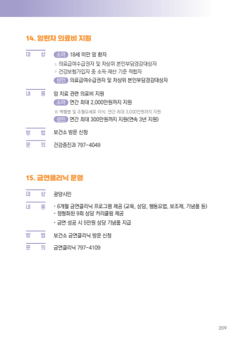 20914. %uc554%ud658%uc790 %uc758%ub8cc%ube44 %uc9c0%uc6d0%ub300%u0009 %uc0c1 %uc18c%uc544 18%uc138 %ubbf8%ub9cc %uc554 %ud658%uc790%u00bb %uc758%ub8cc%uae09%uc5ec%uc218%uae09%uad8c%uc790 %ubc0f %ucc28%uc0c1%uc704 %ubcf8%uc778%ubd80%ub2f4%uacbd%uac10%ub300%uc0c1%uc790%u00bb %uac74%uac15%ubcf4%ud5d8%uac00%uc785%uc790 %uc911 %uc18c%ub4dd%u00b7%uc7ac%uc0b0 %uae30%uc900 %uc801%ud569%uc790 %uc131%uc778 %uc758%ub8cc%uae09%uc5ec%uc218%uae09%uad8c%uc790 %ubc0f %ucc28%uc0c1%uc704 %ubcf8%uc778%ubd80%ub2f4%uacbd%uac10%ub300%uc0c1%uc790%ub0b4%u0009 %uc6a9 %uc554 %uce58%ub8cc %uad00%ub828 %uc758%ub8cc%ube44 %uc9c0%uc6d0 %uc18c%uc544 %uc5f0%uac04 %ucd5c%ub300 2,000%ub9cc%uc6d0%uae4c%uc9c0 %uc9c0%uc6d0%u203b %ubc31%ud608%ubcd1 %ubc0f %uc870%ud608%ubaa8%uc138%ud3ec %uc774%uc2dd: %uc5f0%uac04 %ucd5c%ub300 3,000%ub9cc%uc6d0%uae4c%uc9c0 %uc9c0%uc6d0 %uc131%uc778 %uc5f0%uac04 %ucd5c%ub300 300%ub9cc%uc6d0%uae4c%uc9c0 %uc9c0%uc6d0(%uc5f0%uc18d 3%ub144 %uc9c0%uc6d0)%ubc29%u0009 %ubc95 %ubcf4%uac74%uc18c %ubc29%ubb38 %uc2e0%uccad%ubb38%u0009 %uc758 %uac74%uac15%uc99d%uc9c4%uacfc 797-404915. %uae08%uc5f0%ud074%ub9ac%ub2c9 %uc6b4%uc601%ub300 %u0009 %uc0c1 %uad11%uc591%uc2dc%ubbfc%ub0b4%u0009 %uc6a9 %u2022 6%uac1c%uc6d4 %uae08%uc5f0%ud074%ub9ac%ub2c9 %ud504%ub85c%uadf8%ub7a8 %uc81c%uacf5 (%uad50%uc721, %uc0c1%ub2f4, %ud589%ub3d9%uc694%ubc95, %ubcf4%uc870%uc81c, %uae30%ub150%ud488 %ub4f1)%u2022 %uc815%ud615%ud654%ub41c 9%ud68c %uc0c1%ub2f4 %ucee4%ub9ac%ud058%ub7fc %uc81c%uacf5%u2022 %uae08%uc5f0 %uc131%uacf5 %uc2dc 5%ub9cc%uc6d0 %uc0c1%ub2f9 %uae30%ub150%ud488 %uc9c0%uae09%ubc29 %u0009 %ubc95 %ubcf4%uac74%uc18c %uae08%uc5f0%ud074%ub9ac%ub2c9 %ubc29%ubb38 %uc2e0%uccad%ubb38%u0009 %uc758 %uae08%uc5f0%ud074%ub9ac%ub2c9 797-4109