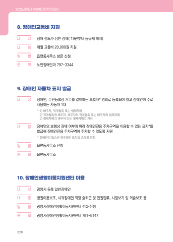 2025 %uad11%uc591%uc2dc %uc0dd%uc560%ubcf5%uc9c0%uc815%ucc45 %uc548%ub0b4%uc11c2208. %uc7a5%uc560%uc778%uad50%ud1b5%ube44 %uc9c0%uc6d0%ub300 %u0009 %uc0c1 %uc7a5%uc560 %uc815%ub3c4%uac00 %uc2ec%ud55c %uc7a5%uc560(%u00b419%ub144%ubd80%ud130 %ub4f1%uae09%uc81c %ud3d0%uc9c0)%ub0b4 %u0009 %uc6a9 %ub9e4%uc6d4 %uad50%ud1b5%ube44 20,000%uc6d0 %uc9c0%uc6d0%ubc29%u0009 %ubc95 %uc74d%uba74%ub3d9%uc0ac%ubb34%uc18c %ubc29%ubb38 %uc2e0%uccad%ubb38 %u0009 %uc758 %ub178%uc778%uc7a5%uc560%uc778%uacfc 797-33449. %uc7a5%uc560%uc778 %uc790%ub3d9%ucc28 %ud45c%uc9c0 %ubc1c%uae09%ub300%u0009 %uc0c1 %uc7a5%uc560%uc778, %uc8fc%ubbfc%ub4f1%ub85d%uc0c1 %uac70%uc8fc%ub97c %uac19%uc774%ud558%ub294 %ubcf4%ud638%uc790* %uba85%uc758%ub85c %ub4f1%ub85d%ub418%uc5b4 %uc788%uace0 %uc7a5%uc560%uc778%uc774 %uc8fc%ub85c %uc0ac%uc6a9%ud558%ub294 %uc790%ub3d9%ucc28 1%ub300* 1) %ubc30%uc6b0%uc790, %uc9c1%uacc4%ud608%uc871 %ub610%ub294 %ud615%uc81c%uc790%ub9e42) %uc9c1%uacc4%ud608%uc871%uc758 %ubc30%uc6b0%uc790, %ubc30%uc6b0%uc790%uc758 %uc9c1%uacc4%ud608%uc871 %ub610%ub294 %ubc30%uc6b0%uc790%uc758 %ud615%uc81c%uc790%ub9e43) %ud615%uc81c%uc790%ub9e4%uc758 %ubc30%uc6b0%uc790 %ub610%ub294 %ud615%uc81c%uc790%ub9e4%uc758 %uc790%ub140%ub0b4%u0009 %uc6a9 %uc7a5%uc560%uc778%uc758 %ubcf4%ud589%uc0c1 %uc7a5%uc560 %uc5ec%ubd80%uc5d0 %ub530%ub77c %uc7a5%uc560%uc778%uc804%uc6a9 %uc8fc%ucc28%uad6c%uc5ed%uc744 %uc774%uc6a9%ud560 %uc218 %uc788%ub294 %ud45c%uc9c0*%ub97c %ubc1c%uae09%ud574 %uc7a5%uc560%uc778%uc804%uc6a9 %uc8fc%ucc28%uad6c%uc5ed%uc5d0 %uc8fc%ucc28%ud560 %uc218 %uc788%ub3c4%ub85d %uc9c0%uc6d0* %uc7a5%uc560%uc778%uc774 %ud0d1%uc2b9%ud55c %uacbd%uc6b0%uc5d0%ub9cc %ud45c%uc9c0%uc758 %ud6a8%ub825%uc744 %uc778%uc815%ubc29%u0009 %ubc95 %uc74d%uba74%ub3d9%uc0ac%ubb34%uc18c %uc2e0%uccad%ubb38%u0009 %uc758 %uc74d%uba74%ub3d9%uc0ac%ubb34%uc18c10. %uc7a5%uc560%uc778%uc0dd%ud65c%uc774%ub3d9%uc9c0%uc6d0%uc13c%ud130 %uc774%uc6a9%ub300%u0009 %uc0c1 %uad11%uc591%uc2dc %ub4f1%ub85d %uc77c%ubc18%uc7a5%uc560%uc778%ub0b4 %u0009 %uc6a9 %ubcd1%uc6d0%uc774%uc6a9%ubcf4%uc870, %uc2dc%uac01%uc7a5%uc560%uc778 %uc9c1%uc7a5 %ucd9c%ud1f4%uadfc %ubc0f %ubbfc%uc6d0%uc5c5%ubb34, %uc2dc%uc7a5%ubcf4%uae30 %ubc0f %uc678%ucd9c%ubcf4%uc870 %ub4f1 %ubc29 %u0009 %ubc95 %uad11%uc591%uc2dc%uc7a5%uc560%uc778%uc0dd%ud65c%uc774%ub3d9%uc9c0%uc6d0%uc13c%ud130 %uc804%ud654 %uc2e0%uccad%ubb38%u0009 %uc758 %uad11%uc591%uc2dc%uc7a5%uc560%uc778%uc0dd%ud65c%uc774%ub3d9%uc9c0%uc6d0%uc13c%ud130 791-5147