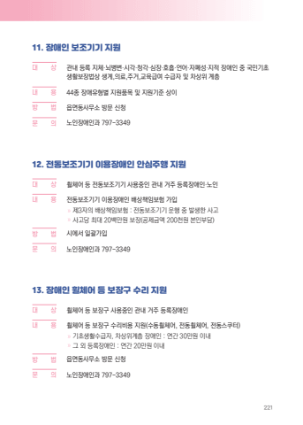 22111. %uc7a5%uc560%uc778 %ubcf4%uc870%uae30%uae30 %uc9c0%uc6d0%ub300%u0009 %uc0c1 %uad00%ub0b4 %ub4f1%ub85d %uc9c0%uccb4%u00b7%ub1cc%ubcd1%ubcc0%u00b7%uc2dc%uac01%u00b7%uccad%uac01%u00b7%uc2ec%uc7a5%u00b7%ud638%ud761%u00b7%uc5b8%uc5b4%u00b7%uc790%ud3d0%uc131%u00b7%uc9c0%uc801 %uc7a5%uc560%uc778 %uc911 %uad6d%ubbfc%uae30%ucd08%uc0dd%ud65c%ubcf4%uc7a5%ubc95%uc0c1 %uc0dd%uacc4,%uc758%ub8cc,%uc8fc%uac70,%uad50%uc721%uae09%uc5ec %uc218%uae09%uc790 %ubc0f %ucc28%uc0c1%uc704 %uacc4%uce35%ub0b4%u0009 %uc6a9 44%uc885 %uc7a5%uc560%uc720%ud615%ubcc4 %uc9c0%uc6d0%ud488%ubaa9 %ubc0f %uc9c0%uc6d0%uae30%uc900 %uc0c1%uc774%ubc29 %u0009 %ubc95 %uc74d%uba74%ub3d9%uc0ac%ubb34%uc18c %ubc29%ubb38 %uc2e0%uccad%ubb38%u0009 %uc758 %ub178%uc778%uc7a5%uc560%uc778%uacfc 797-334912. %uc804%ub3d9%ubcf4%uc870%uae30%uae30 %uc774%uc6a9%uc7a5%uc560%uc778 %uc548%uc2ec%uc8fc%ud589 %uc9c0%uc6d0%ub300 %u0009 %uc0c1 %ud720%uccb4%uc5b4 %ub4f1 %uc804%ub3d9%ubcf4%uc870%uae30%uae30 %uc0ac%uc6a9%uc911%uc778 %uad00%ub0b4 %uac70%uc8fc %ub4f1%ub85d%uc7a5%uc560%uc778%u00b7%ub178%uc778%ub0b4 %uc6a9 %uc804%ub3d9%ubcf4%uc870%uae30%uae30 %uc774%uc6a9%uc7a5%uc560%uc778 %ubc30%uc0c1%ucc45%uc784%ubcf4%ud5d8 %uac00%uc785%u00bb %uc81c3%uc790%uc758 %ubc30%uc0c1%ucc45%uc784%ubcf4%ud5d8 : %uc804%ub3d9%ubcf4%uc870%uae30%uae30 %uc6b4%ud589 %uc911 %ubc1c%uc0dd%ud55c %uc0ac%uace0%u00bb %uc0ac%uace0%ub2f9 %ucd5c%ub300 20%ubc31%ub9cc%uc6d0 %ubcf4%uc7a5(%uacf5%uc81c%uae08%uc561 200%ucc9c%uc6d0 %ubcf8%uc778%ubd80%ub2f4)%ubc29 %u0009 %ubc95 %uc2dc%uc5d0%uc11c %uc77c%uad04%uac00%uc785%ubb38 %uc758 %ub178%uc778%uc7a5%uc560%uc778%uacfc 797-334913. %uc7a5%uc560%uc778 %ud720%uccb4%uc5b4 %ub4f1 %ubcf4%uc7a5%uad6c %uc218%ub9ac %uc9c0%uc6d0%ub300 %u0009 %uc0c1 %ud720%uccb4%uc5b4 %ub4f1 %ubcf4%uc7a5%uad6c %uc0ac%uc6a9%uc911%uc778 %uad00%ub0b4 %uac70%uc8fc %ub4f1%ub85d%uc7a5%uc560%uc778%ub0b4 %u0009 %uc6a9 %ud720%uccb4%uc5b4 %ub4f1 %ubcf4%uc7a5%uad6c %uc218%ub9ac%ube44%uc6a9 %uc9c0%uc6d0(%uc218%ub3d9%ud720%uccb4%uc5b4, %uc804%ub3d9%ud720%uccb4%uc5b4, %uc804%ub3d9%uc2a4%ucfe0%ud130)%u00bb %uae30%ucd08%uc0dd%ud65c%uc218%uae09%uc790, %ucc28%uc0c1%uc704%uacc4%uce35 %uc7a5%uc560%uc778 : %uc5f0%uac04 30%ub9cc%uc6d0 %uc774%ub0b4%u00bb %uadf8 %uc678 %ub4f1%ub85d%uc7a5%uc560%uc778 : %uc5f0%uac04 20%ub9cc%uc6d0 %uc774%ub0b4%ubc29 %u0009 %ubc95 %uc74d%uba74%ub3d9%uc0ac%ubb34%uc18c %ubc29%ubb38 %uc2e0%uccad%ubb38 %uc758 %ub178%uc778%uc7a5%uc560%uc778%uacfc 797-3349