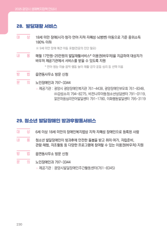2025 %uad11%uc591%uc2dc %uc0dd%uc560%ubcf5%uc9c0%uc815%ucc45 %uc548%ub0b4%uc11c23028. %ubc1c%ub2ec%uc7ac%ud65c %uc11c%ube44%uc2a4%ub300%u0009 %uc0c1 18%uc138 %ubbf8%ub9cc %uc7a5%uc560(%uc2dc%uac01%u00b7%uccad%uac01%u00b7%uc5b8%uc5b4%u00b7%uc9c0%uc801%u00b7%uc790%ud3d0%uc131%u00b7%ub1cc%ubcd1%ubcc0) %uc544%ub3d9%uc73c%ub85c %uae30%uc900 %uc911%uc704%uc18c%ub4dd 180% %uc774%ud558 %u203b 9%uc138 %ubbf8%ub9cc %uc7a5%uc560 %uc608%uacac %uc544%ub3d9 %ud3ec%ud568(%uc804%ubb38%uc758 %uc9c4%ub2e8 %ud544%uc694)%ub0b4%u0009 %uc6a9 %ub9e4%uc6d4 17%ub9cc%uc6d0~25%ub9cc%uc6d0%uc758 %ubc1c%ub2ec%uc7ac%ud65c%uc11c%ube44%uc2a4* %uc774%uc6a9%uad8c(%ubc14%uc6b0%ucc98)%uc744 %uc9c0%uae09%ud558%uc5ec %ub300%uc0c1%uc790%uac00 %ubc14%uc6b0%ucc98 %uc81c%uacf5%uae30%uad00%uc5d0%uc11c %uc11c%ube44%uc2a4%ub97c %ubc1b%uc744 %uc218 %uc788%ub3c4%ub85d %uc9c0%uc6d0 * %uc5b8%uc5b4%u00b7%uccad%ub2a5%u00b7%ubbf8%uc220%u00b7%uc74c%uc545%u00b7%ud589%ub3d9%u00b7%ub180%uc774%u00b7%uc7ac%ud65c%u00b7%uac10%uac01%u00b7%uc6b4%ub3d9%u00b7%uc2ec%ub9ac %ub4f1 %uc120%ud0dd %uc774%uc6a9%ubc29 %u0009 %ubc95 %uc74d%uba74%ub3d9%uc0ac%ubb34%uc18c %ubc29%ubb38 %uc2e0%uccad%ubb38%u0009 %uc758 %ub178%uc778%uc7a5%uc560%uc778%uacfc 797-3344%u00bb %uc81c%uacf5%uae30%uad00 : %uad11%uc591%uc2dc %uad11%uc591%uc7a5%uc560%uc778%ubcf5%uc9c0%uad00 761-4438, %uad11%uc591%uc7a5%uc560%uc778%ubd80%ubaa8%ud68c 761-8348, %u321c%uac10%uc131%uc18c%ub9ac 794-8275, %ube44%uc804%ub098%ubb34%uc544%ub3d9%uccad%uc18c%ub144%uc0c1%ub2f4%uc13c%ud130 791-0119,%ub9d1%uc740%ub9c8%uc74c%uc2ec%ub9ac%uc5b8%uc5b4%ubc1c%ub2ec%uc13c%ud130 791-1780, %uc774%ud654%ud589%ub3d9%ubc1c%ub2ec%uc13c%ud130 795-311929. %uccad%uc18c%ub144 %ubc1c%ub2ec%uc7a5%uc560%uc778 %ubc29%uacfc%ud6c4%ud65c%ub3d9%uc11c%ube44%uc2a4%ub300 %u0009 %uc0c1 6%uc138 %uc774%uc0c1 18%uc138 %ubbf8%ub9cc%uc758 %uc7a5%uc560%uc778%ubcf5%uc9c0%ubc95%uc0c1 %uc9c0%uc801%u00b7%uc790%ud3d0%uc131 %uc7a5%uc560%uc778%uc73c%ub85c %ub4f1%ub85d%ub41c %uc0ac%ub78c%ub0b4%u0009 %uc6a9 %uccad%uc18c%ub144 %ubc1c%ub2ec%uc7a5%uc560%uc778%uc774 %ubc29%uacfc%ud6c4%uc5d0 %uc548%uc804%ud55c %ub3cc%ubd04%uc744 %ubc1b%uace0 %ucde8%ubbf8%u00b7%uc5ec%uac00, %uc790%ub9bd%uc900%ube44, %uad00%ub78c%u00b7%uccb4%ud5d8, %uc790%uc870%ud65c%ub3d9 %ub4f1 %ub2e4%uc591%ud55c %ud504%ub85c%uadf8%ub7a8%uc5d0 %ucc38%uc5ec%ud560 %uc218 %uc788%ub294 %uc774%uc6a9%uad8c(%ubc14%uc6b0%ucc98) %uc9c0%uc6d0 %ubc29 %u0009 %ubc95 %uc74d%uba74%ub3d9%uc0ac%ubb34%uc18c %ubc29%ubb38 %uc2e0%uccad%ubb38%u0009 %uc758 %ub178%uc778%uc7a5%uc560%uc778%uacfc 797-3344%u00bb %uc81c%uacf5%uae30%uad00 : %uad11%uc591%uc2dc%ubc1c%ub2ec%uc7a5%uc560%uc778%uc8fc%uac04%ud65c%ub3d9%uc13c%ud130(761-8345)