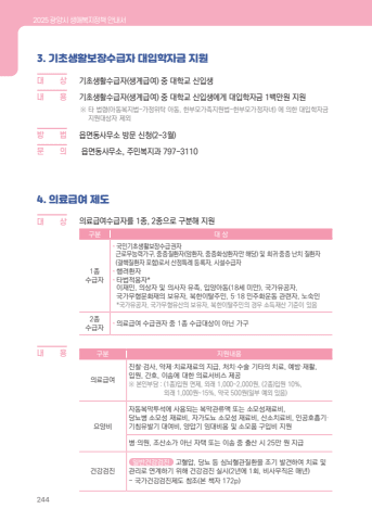 2025 %uad11%uc591%uc2dc %uc0dd%uc560%ubcf5%uc9c0%uc815%ucc45 %uc548%ub0b4%uc11c2443. %uae30%ucd08%uc0dd%ud65c%ubcf4%uc7a5%uc218%uae09%uc790 %ub300%uc785%ud559%uc790%uae08 %uc9c0%uc6d0%ub300%u0009 %uc0c1 %uae30%ucd08%uc0dd%ud65c%uc218%uae09%uc790(%uc0dd%uacc4%uae09%uc5ec) %uc911 %ub300%ud559%uad50 %uc2e0%uc785%uc0dd%ub0b4%u0009 %uc6a9 %uae30%ucd08%uc0dd%ud65c%uc218%uae09%uc790(%uc0dd%uacc4%uae09%uc5ec) %uc911 %ub300%ud559%uad50 %uc2e0%uc785%uc0dd%uc5d0%uac8c %ub300%uc785%ud559%uc790%uae08 1%ubc31%ub9cc%uc6d0 %uc9c0%uc6d0%u203b %ud0c0 %ubc95%ub839(%uc544%ub3d9%ubcf5%uc9c0%ubc95-%uac00%uc815%uc704%ud0c1 %uc544%ub3d9, %ud55c%ubd80%ubaa8%uac00%uc871%uc9c0%uc6d0%ubc95-%ud55c%ubd80%ubaa8%uac00%uc815%uc790%ub140) %uc5d0 %uc758%ud55c %ub300%uc785%ud559%uc790%uae08 %uc9c0%uc6d0%ub300%uc0c1%uc790 %uc81c%uc678%ubc29 %u0009 %ubc95 %uc74d%uba74%ub3d9%uc0ac%ubb34%uc18c %ubc29%ubb38 %uc2e0%uccad(2~3%uc6d4)%ubb38 %u0009 %uc758 %uc74d%uba74%ub3d9%uc0ac%ubb34%uc18c, %uc8fc%ubbfc%ubcf5%uc9c0%uacfc 797-31104. %uc758%ub8cc%uae09%uc5ec %uc81c%ub3c4%ub300%u0009 %uc0c1 %uc758%ub8cc%uae09%uc5ec%uc218%uae09%uc790%ub97c 1%uc885, 2%uc885%uc73c%ub85c %uad6c%ubd84%ud574 %uc9c0%uc6d0%uad6c%ubd84 %ub300 %uc0c11%uc885%uc218%uae09%uc790%u2022 %uad6d%ubbfc%uae30%ucd08%uc0dd%ud65c%ubcf4%uc7a5%uc218%uae09%uad8c%uc790 %uadfc%ub85c%ubb34%ub2a5%ub825%uac00%uad6c, %uc911%uc99d%uc9c8%ud658%uc790(%uc554%ud658%uc790, %uc911%uc99d%ud654%uc0c1%ud658%uc790%ub9cc %ud574%ub2f9) %ubc0f %ud76c%uadc0%u00b7%uc911%uc99d %ub09c%uce58 %uc9c8%ud658%uc790(%uacb0%ud575%uc9c8%ud658%uc790 %ud3ec%ud568)%ub85c%uc11c %uc0b0%uc815%ud2b9%ub840 %ub4f1%ub85d%uc790, %uc2dc%uc124%uc218%uae09%uc790%u2022 %ud589%ub824%ud658%uc790%u2022 %ud0c0%ubc95%uc801%uc6a9%uc790*%uc774%uc7ac%ubbfc, %uc758%uc0c1%uc790 %ubc0f %uc758%uc0ac%uc790 %uc720%uc871, %uc785%uc591%uc544%ub3d9(18%uc138 %ubbf8%ub9cc), %uad6d%uac00%uc720%uacf5%uc790, %uad6d%uac00%ubb34%ud615%ubb38%ud654%uc7ac%uc758 %ubcf4%uc720%uc790, %ubd81%ud55c%uc774%ud0c8%uc8fc%ubbfc, 5%u00b718 %ubbfc%uc8fc%ud654%uc6b4%ub3d9 %uad00%ub828%uc790, %ub178%uc219%uc778 *%uad6d%uac00%uc720%uacf5%uc790, %uad6d%uac00%ubb34%ud615%uc720%uc0b0%uc758 %ubcf4%uc720%uc790, %ubd81%ud55c%uc774%ud0c8%uc8fc%ubbfc%uc758 %uacbd%uc6b0 %uc18c%ub4dd%uc7ac%uc0b0 %uae30%uc900%uc774 %uc788%uc74c2%uc885%uc218%uae09%uc790 %u2022 %uc758%ub8cc%uae09%uc5ec %uc218%uae09%uad8c%uc790 %uc911 1%uc885 %uc218%uae09%ub300%uc0c1%uc774 %uc544%ub2cc %uac00%uad6c%uad6c%ubd84 %uc9c0%uc6d0%ub0b4%uc6a9%uc758%ub8cc%uae09%uc5ec%uc9c4%ucc30%u00b7%uac80%uc0ac, %uc57d%uc81c%u00b7%uce58%ub8cc%uc7ac%ub8cc%uc758 %uc9c0%uae09, %ucc98%uce58%u00b7%uc218%uc220 %uae30%ud0c0%uc758 %uce58%ub8cc, %uc608%ubc29%u00b7%uc7ac%ud65c, %uc785%uc6d0, %uac04%ud638, %uc774%uc1a1%uc5d0 %ub300%ud55c %uc758%ub8cc%uc11c%ube44%uc2a4 %uc81c%uacf5%u203b %ubcf8%uc778%ubd80%ub2f4 : (1%uc885)%uc785%uc6d0 %uba74%uc81c, %uc678%ub798 1,000~2,000%uc6d0, (2%uc885)%uc785%uc6d0 10%, %uc678%ub798 1,000%uc6d0~15%, %uc57d%uad6d 500%uc6d0(%uc77c%ubd80 %uc608%uc678 %uc788%uc74c)%uc694%uc591%ube44%uc790%ub3d9%ubcf5%ub9c9%ud22c%uc11d%uc5d0 %uc0ac%uc6a9%ub418%ub294 %ubcf5%ub9c9%uad00%ub958%uc561 %ub610%ub294 %uc18c%ubaa8%uc131%uc7ac%ub8cc%ube44, %ub2f9%ub1e8%ubcd1 %uc18c%ubaa8%uc131 %uc7ac%ub8cc%ube44, %uc790%uac00%ub3c4%ub1e8 %uc18c%ubaa8%uc131 %uc7ac%ub8cc%ube44, %uc0b0%uc18c%uce58%ub8cc%ube44, %uc778%uacf5%ud638%ud761%uae30%u00b7%uae30%uce68%uc720%ubc1c%uae30 %ub300%uc5ec%ube44, %uc591%uc555%uae30 %uc784%ub300%ube44%uc6a9 %ubc0f %uc18c%ubaa8%ud488 %uad6c%uc785%ube44 %uc9c0%uc6d0%ubcd1%u00b7%uc758%uc6d0, %uc870%uc0b0%uc18c%uac00 %uc544%ub2cc %uc790%ud0dd %ub610%ub294 %uc774%uc1a1 %uc911 %ucd9c%uc0b0 %uc2dc 25%ub9cc %uc6d0 %uc9c0%uae09%uac74%uac15%uac80%uc9c4 %uc77c%ubc18%uac74%uac15%uac80%uc9c4 %uace0%ud608%uc555, %ub2f9%ub1e8 %ub4f1 %uc2ec%ub1cc%ud608%uad00%uc9c8%ud658%uc744 %uc870%uae30 %ubc1c%uacac%ud558%uc5ec %uce58%ub8cc %ubc0f %uad00%ub9ac%ub85c %uc5f0%uacc4%ud558%uae30 %uc704%ud574 %uac74%uac15%uac80%uc9c4 %uc2e4%uc2dc(2%ub144%uc5d0 1%ud68c, %ube44%uc0ac%ubb34%uc9c1%uc740 %ub9e4%ub144)- %uad6d%uac00%uac74%uac15%uac80%uc9c4%uc81c%ub3c4 %ucc38%uc870(%ubcf8 %ucc45%uc790 172p) %ub0b4%u0009 %uc6a9