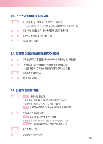 25523. %uc2a4%ud3ec%uce20%uac15%uc88c%uc774%uc6a9%uad8c %uc9c0%uc6d0%uc0ac%uc5c5%ub300%u0009 %uc0c1 5%u223c18%uc138 %uc720%u00b7%uccad%uc18c%ub144(%ucd9c%uc0dd%uc5f0%ub3c4 2007%u223c2020%ub144)%u00bb %uc218%uae09%uc790 %ubc0f %ucc28%uc0c1%uc704 %uac00%uad6c, %ud55c%ubd80%ubaa8 %uac00%uc871, %uacbd%ucc30%uccad %ucd94%ucc9c %ubc94%uc8c4%ud53c%ud574 %uac00%uad6c%ub0b4%u0009 %uc6a9 %ub9e4%ub2ec 10%ub9cc 5%ucc9c%uc6d0 %ubc94%uc704 %ub0b4 %uc2a4%ud3ec%uce20%uac15%uc88c %uc218%uac15%ub8cc %uc5f0%uc911%uc9c0%uc6d0%ubc29%u0009 %ubc95 %ud648%ud398%uc774%uc9c0 %uc2e0%uccad %ubc0f %uc74d%uba74%ub3d9 %ubc29%ubb38 %uc2e0%uccad%ubb38%u0009 %uc758 %uccb4%uc721%uacfc 797-272924. %ub9de%ucda4%ud615 %uae30%ucd08%uc0dd%ud65c%ubcf4%uc7a5%uc81c%ub3c4(%uc8fc%uac70%uae09%uc5ec)%ub300%u0009 %uc0c1 %uc18c%ub4dd%uc778%uc815%uc561%uc774 %uae30%uc900 %uc911%uc704%uc18c%ub4dd 49%%uc774%ud558%uc758 %uac00%uad6c(1%uc778 1,148%ub9cc%uc6d0)%ub0b4%u0009 %uc6a9 %u2022 %uc784%ucc28%uae09%uc5ec: %uae30%uc900 %uc784%ub300%ub8cc%ub97c %uc0c1%ud55c%uc73c%ub85c %uc2e4%uc81c %uc784%ucc28%ub8cc %uc9c0%uc6d0%u2022 %uc218%uc120%uc720%uc9c0%uae09%uc5ec: %uc8fc%ud0dd %ub178%ud6c4%ub3c4%ub97c %ud3c9%uac00%ud558%uc5ec %uc8fc%ud0dd %ubcf4%uc218 %uc9c0%uc6d0%ubc29 %u0009 %ubc95 %ud604%uae08%uc9c0%uae09 %ubc0f %uc8fc%ud0dd%ubcf4%uc218%ubb38 %u0009 %uc758 061) 797-288625. %uc554%ud658%uc790 %uc758%ub8cc%ube44 %uc9c0%uc6d0%ub300%u0009 %uc0c1 %uc18c%uc544 18%uc138 %ubbf8%ub9cc %uc554 %ud658%uc790%u00bb %uc758%ub8cc%uae09%uc5ec%uc218%uae09%uad8c%uc790 %ubc0f %ucc28%uc0c1%uc704 %ubcf8%uc778%ubd80%ub2f4%uacbd%uac10%ub300%uc0c1%uc790%u00bb %uac74%uac15%ubcf4%ud5d8%uac00%uc785%uc790 %uc911 %uc18c%ub4dd%u00b7%uc7ac%uc0b0 %uae30%uc900 %uc801%ud569%uc790 %uc131%uc778 %uc758%ub8cc%uae09%uc5ec%uc218%uae09%uad8c%uc790 %ubc0f %ucc28%uc0c1%uc704 %ubcf8%uc778%ubd80%ub2f4%uacbd%uac10%ub300%uc0c1%uc790%ub0b4%u0009 %uc6a9 %uc554 %uce58%ub8cc %uad00%ub828 %uc758%ub8cc%ube44 %uc9c0%uc6d0 %uc18c%uc544 %uc5f0%uac04 %ucd5c%ub300 2,000%ub9cc%uc6d0%uae4c%uc9c0 %uc9c0%uc6d0%u203b %ubc31%ud608%ubcd1 %ubc0f %uc870%ud608%ubaa8%uc138%ud3ec %uc774%uc2dd: %uc5f0%uac04 %ucd5c%ub300 3,000%ub9cc%uc6d0%uae4c%uc9c0 %uc9c0%uc6d0 %uc131%uc778 %uc5f0%uac04 %ucd5c%ub300 300%ub9cc%uc6d0%uae4c%uc9c0 %uc9c0%uc6d0(%uc5f0%uc18d 3%ub144 %uc9c0%uc6d0)%ubc29%u0009 %ubc95 %ubcf4%uac74%uc18c %ubc29%ubb38 %uc2e0%uccad%ubb38%u0009 %uc758 %uac74%uac15%uc99d%uc9c4%uacfc 797-4049