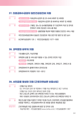 26137. %uc758%ub8cc%uae09%uc5ec%uc218%uae09%uad8c%uc790 %uc77c%ubc18%uac74%uac15%uac80%uc9c4%ube44 %uc9c0%uc6d0%ub300 %u0009 %uc0c1 %uc77c%ubc18%uac74%uac15%uac80%uc9c4 %uc758%ub8cc%uae09%uc5ec%uc218%uae09%uad8c%uc790 %uc911 20~64%uc138 %uc138%ub300%uc8fc %ubc0f %uc138%ub300%uc6d0 %uc758%ub8cc%uae09%uc5ec%uc0dd%uc560%uc804%ud658%uae30%uac80%uc9c4 %uc758%ub8cc%uae09%uc5ec%uc218%uae09%uad8c%uc790 %uc911 66%uc138%uc774%uc0c1 %uc138%ub300%uc8fc %ubc0f %uc138%ub300%uc6d0%ub0b4 %u0009 %uc6a9 %uc77c%ubc18%uac74%uac15%uac80%uc9c4 %uace0%ud608%uc555, %ub2f9%ub1e8 %ub4f1 %uc2ec%ub1cc%ud608%uad00%uc9c8%ud658%uc744 %uc870%uae30 %ubc1c%uacac%ud558%uc5ec %uce58%ub8cc %ubc0f %uad00%ub9ac%ub85c %uc5f0%uacc4%ud558%uae30 %uc704%ud574 %uac74%uac15%uac80%uc9c4 %uc11c%ube44%uc2a4%ub97c %uc81c%uacf5 %uc758%ub8cc%uae09%uc5ec%uc0dd%uc560%uc804%ud658%uae30%uac80%uc9c4 %uc131%ubcc4%uc5f0%ub839%ubcc4 %ud2b9%uc131%uc5d0 %uc801%ud569%ud55c %ub9de%ucda4%ud615 %uac74%uac15%uc9c4%ub2e8 %uc11c%ube44%uc2a4 %uc81c%uacf5%ubc29 %u0009 %ubc95 %uad6d%ubbfc%uac74%uac15%ubcf4%ud5d8%uacf5%ub2e8%uc5d0%uc11c %ubc1c%uc1a1%ud55c %uac74%uac15%uac80%uc9c4%ud45c %uc9c0%ucc38 %uac80%uc9c4%uae30%uad00 %ubc29%ubb38 %ubc0f %uac80%uc9c4 %uc2e4%uc2dc%ubb38%u0009 %uc758 %ubcf4%uac74%ubcf5%uc9c0%uc0c1%ub2f4%uc13c%ud130 129 / %uad6d%ubbfc%uac74%uac15%ubcf4%ud5d8%uacf5%ub2e8 1577-100038. %uacfc%ud559%ubb38%ud654 %ubc14%uc6b0%ucc98 %uc9c0%uc6d0%ub300 %u0009 %uc0c1 %uae30%ucd08%uc0dd%ud65c%uc218%uae09%uc790, %ucc28%uc0c1%uc704%uacc4%uce35%ub0b4 %u0009 %uc6a9 %uacfc%ud559%ubb38%ud654 %uc0c1%ud488 %ubc0f %uc11c%ube44%uc2a4%ub97c %uc774%uc6a9%ud560 %uc218 %uc788%ub294 %uc628%ub77c%uc778 %ud3ec%uc778%ud2b8 %uc9c0%uae09 %uc81c%uacf5%uae08%uc561 50,000%uc6d0 %uc81c%uacf5%uc0c1%ud488 %uacfc%ud559%uacf5%uc5f0, %uacfc%ud559%uc804%uc2dc%u00b7%uccb4%ud5d8, %uacfc%ud559%uac15%uc5f0%u00b7%uad50%uc721, %uacfc%ud559%uad50%uad6c, %uacfc%ud559%ub3c4%uc11c %ub4f1 %ubc29 %u0009 %ubc95 %uacfc%ud559%ubb38%ud654%ubc14%uc6b0%ucc98 %ud648%ud398%uc774%uc9c0%uc5d0%uc11c %uc628%ub77c%uc778%uc2e0%uccad %ubb38%u0009 %uc758 %uacfc%ud559%ubb38%ud654%ubc14%uc6b0%ucc98 %uc9c0%uc6d0%uc13c%ud130 1551-001239. %uc11c%ubbfc%uae08%uc735 %ud65c%uc131%ud654 %uc9c0%uc6d0 (%uadfc%ub85c%uc790%ud587%uc0b4%ub860 %ubcf4%uc99d%uc0ac%uc5c5)%ub300 %u0009 %uc0c1 %u2022 3%uac1c%uc6d4 %uc774%uc0c1 %uc7ac%uc9c1%uc790(%ub2e8, %uc774%uc9c1 %ub4f1%uc758 %uacbd%uc6b0 %ud604 %uc9c1%uc7a5%uc5d0%uc11c 1%uac1c%uc6d4 %uc774%uc0c1 %uc7ac%uc9c1%uc911%uc774%uace0 %ucd5c%uadfc 1%ub144%uc774%ub0b4 3%uac1c%uc6d4 %uc774%uc0c1 %uadfc%ub85c%uc758 %uacbd%uc6b0 %uc7ac%uc9c1%uc694%uac74 %ucda9%uc871 %uc778%uc815)%u2022 %uc5f0%uac04 %uadfc%ub85c%uc18c%ub4dd %uae08%uc561%uc774 3%ucc9c 5%ubc31%ub9cc%uc6d0 %uc774%ud558%uc778 %uc790 %ub610%ub294 %uac1c%uc778%uc2e0%uc6a9%ud3c9%uc810%uc774 %ud558%uc704 100%ubd84%uc758 20%uc774%ud558%uc774%uba74%uc11c %uc5f0%uac04 %uadfc%ub85c%uc18c%ub4dd %uae08%uc561%uc774 4%ucc9c 5%ubc31%ub9cc%uc6d0 %uc774%ud558%uc778 %uc790 %ub0b4%u0009 %uc6a9 %uc81c%ub3c4%uad8c %uae08%uc735%uae30%uad00%uc744 %uc774%uc6a9%ud558%uae30 %uc5b4%ub824%uc6b4 %uc800%uc2e0%uc6a9%u00b7%uc800%uc18c%ub4dd %uadfc%ub85c%uc790%uc5d0%uac8c %uc11c%ubbfc%uae08%uc735%uc9c4%ud765%uc6d0%uc5d0%uc11c%ubcf4%uc99d%uc744 %uc9c0%uc6d0%ud558%uace0, %uc11c%ubbfc%uae08%uc735%ud68c%uc0ac%uc5d0%uc11c %ub3d9 %ubcf4%uc99d%uc744 %ub2f4%ubcf4%ub85c %ud587%uc0b4%ub860%uc744 %uacf5%uae09%ubc29%ubc95/%ubb38%uc758 %uadfc%ub85c%uc790%ud587%uc0b4%ub860 %ucde8%uae09 %uae08%uc735%ud68c%uc0ac%uc5d0 %ubc29%ubb38 %ubc0f %uc778%ud130%ub137 %uc2e0%uccad%u00bb %ucde8%uae09%uc9c0%uc810 %ud655%uc778 : %uc11c%ubbfc%uae08%uc735%uc9c4%ud765%uc6d0 (www.kinfa.or.kr) / %uc11c%ubbfc%uae08%uc735%ucf5c%uc13c%ud130 1397