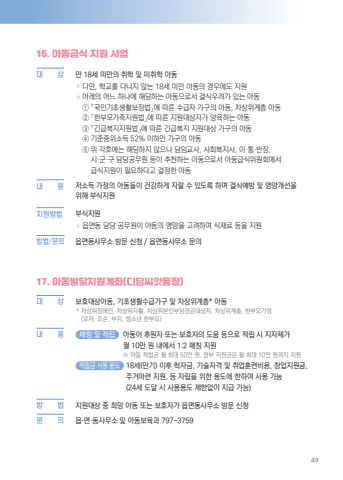 4916. %uc544%ub3d9%uae09%uc2dd %uc9c0%uc6d0 %uc0ac%uc5c5%ub300%u0009 %uc0c1 %ub9cc 18%uc138 %ubbf8%ub9cc%uc758 %ucde8%ud559 %ubc0f %ubbf8%ucde8%ud559 %uc544%ub3d9%u00bb %ub2e4%ub9cc, %ud559%uad50%ub97c %ub2e4%ub2c8%uc9c0 %uc54a%ub294 18%uc138 %ubbf8%ub9cc %uc544%ub3d9%uc758 %uacbd%uc6b0%uc5d0%ub3c4 %uc9c0%uc6d0%u00bb %uc544%ub798%uc758 %uc5b4%ub290 %ud558%ub098%uc5d0 %ud574%ub2f9%ud558%ub294 %uc544%ub3d9%uc73c%ub85c%uc11c %uacb0%uc2dd%uc6b0%ub824%uac00 %uc788%ub294 %uc544%ub3d9%u2460 %u300c%uad6d%ubbfc%uae30%ucd08%uc0dd%ud65c%ubcf4%uc7a5%ubc95%u300d%uc5d0 %ub530%ub978 %uc218%uae09%uc790 %uac00%uad6c%uc758 %uc544%ub3d9, %ucc28%uc0c1%uc704%uacc4%uce35 %uc544%ub3d9%u2461 %u300c%ud55c%ubd80%ubaa8%uac00%uc871%uc9c0%uc6d0%ubc95%u300d%uc5d0 %ub530%ub978 %uc9c0%uc6d0%ub300%uc0c1%uc790%uac00 %uc591%uc721%ud558%ub294 %uc544%ub3d9%u2462 %u300c%uae34%uae09%ubcf5%uc9c0%uc9c0%uc6d0%ubc95%u300d%uc5d0 %ub530%ub978 %uae34%uae09%ubcf5%uc9c0 %uc9c0%uc6d0%ub300%uc0c1 %uac00%uad6c%uc758 %uc544%ub3d9%u2463 %uae30%uc900%uc911%uc704%uc18c%ub4dd 52% %uc774%ud558%uc778 %uac00%uad6c%uc758 %uc544%ub3d9 %u2464 %uc704 %uac01%ud638%uc5d0%ub294 %ud574%ub2f9%ud558%uc9c0 %uc54a%uc73c%ub098 %ub2f4%uc784%uad50%uc0ac, %uc0ac%ud68c%ubcf5%uc9c0%uc0ac, %uc774%u00b7%ud1b5%u00b7%ubc18%uc7a5,%uc2dc%u00b7%uad70%u00b7%uad6c %ub2f4%ub2f9%uacf5%ubb34%uc6d0 %ub4f1%uc774 %ucd94%ucc9c%ud558%ub294 %uc544%ub3d9%uc73c%ub85c%uc11c %uc544%ub3d9%uae09%uc2dd%uc704%uc6d0%ud68c%uc5d0%uc11c%uae09%uc2dd%uc9c0%uc6d0%uc774 %ud544%uc694%ud558%ub2e4%uace0 %uacb0%uc815%ud55c %uc544%ub3d9%ub0b4%u0009 %uc6a9 %uc800%uc18c%ub4dd %uac00%uc815%uc758 %uc544%ub3d9%ub4e4%uc774 %uac74%uac15%ud558%uac8c %uc790%ub784 %uc218 %uc788%ub3c4%ub85d %ud558%uba70 %uacb0%uc2dd%uc608%ubc29 %ubc0f %uc601%uc591%uac1c%uc120%uc744%uc704%ud574 %ubd80%uc2dd%uc9c0%uc6d0%uc9c0%uc6d0%ubc29%ubc95%u0009 %ubd80%uc2dd%uc9c0%uc6d0%u00bb %uc74d%uba74%ub3d9 %ub2f4%ub2f9 %uacf5%ubb34%uc6d0%uc774 %uc544%ub3d9%uc758 %uc601%uc591%uc744 %uace0%ub824%ud558%uc5ec %uc2dd%uc7ac%ub8cc %ub4f1%uc744 %uc9c0%uc6d0%ubc29%ubc95/%ubb38%uc758 %uc74d%uba74%ub3d9%uc0ac%ubb34%uc18c %ubc29%ubb38 %uc2e0%uccad / %uc74d%uba74%ub3d9%uc0ac%ubb34%uc18c %ubb38%uc75817. %uc544%ub3d9%ubc1c%ub2ec%uc9c0%uc6d0%uacc4%uc88c(%ub514%ub524%uc528%uc557%ud1b5%uc7a5)%ub300%u0009 %uc0c1 %ubcf4%ud638%ub300%uc0c1%uc544%ub3d9, %uae30%ucd08%uc0dd%ud65c%uc218%uae09%uac00%uad6c %ubc0f %ucc28%uc0c1%uc704%uacc4%uce35* %uc544%ub3d9* %ucc28%uc0c1%uc704%uc7a5%uc560%uc778, %ucc28%uc0c1%uc704%uc790%ud65c, %ucc28%uc0c1%uc704%ubcf8%uc778%ubd80%ub2f4%uacbd%uac10%ub300%uc0c1%uc790, %ucc28%uc0c1%uc704%uacc4%uce35, %ud55c%ubd80%ubaa8%uac00%uc815(%ubaa8%uc790, %uc870%uc190, %ubd80%uc790, %uccad%uc18c%ub144 %ud55c%ubd80%ubaa8)%ub0b4%u0009 %uc6a9 %ub9e4%uce6d %ubc0f %uc801%ub9bd %uc544%ub3d9%uc774 %ud6c4%uc6d0%uc790 %ub610%ub294 %ubcf4%ud638%uc790%uc758 %ub3c4%uc6c0 %ub4f1%uc73c%ub85c %uc801%ub9bd %uc2dc %uc9c0%uc790%uccb4%uac00 %uc6d4 10%ub9cc %uc6d0 %ub0b4%uc5d0%uc11c 1:2 %ub9e4%uce6d %uc9c0%uc6d0%u203b %uc544%ub3d9 %uc801%ub9bd%uae08 %uc6d4 %ucd5c%ub300 50%ub9cc %uc6d0, %uc815%ubd80 %uc9c0%uc6d0%uae08%uc740 %uc6d4 %ucd5c%ub300 10%ub9cc %uc6d0%uae4c%uc9c0 %uc9c0%uc6d0 %uc801%ub9bd%uae08 %uc0ac%uc6a9 %uc6a9%ub3c4 18%uc138(%ub9cc%uae30) %uc774%ud6c4 %ud559%uc790%uae08, %uae30%uc220%uc790%uaca9 %ubc0f %ucde8%uc5c5%ud6c8%ub828%ube44%uc6a9, %ucc3d%uc5c5%uc9c0%uc6d0%uae08, %uc8fc%uac70%ub9c8%ub828 %uc9c0%uc6d0, %ub4f1 %uc790%ub9bd%uc744 %uc704%ud55c %uc6a9%ub3c4%uc5d0 %ud55c%ud558%uc5ec %uc0ac%uc6a9 %uac00%ub2a5(24%uc138 %ub3c4%ub2ec %uc2dc %uc0ac%uc6a9%uc6a9%ub3c4 %uc81c%ud55c%uc5c6%uc774 %uc9c0%uae09 %uac00%ub2a5)%ubc29%u0009 %ubc95 %uc9c0%uc6d0%ub300%uc0c1 %uc911 %ud76c%ub9dd %uc544%ub3d9 %ub610%ub294 %ubcf4%ud638%uc790%uac00 %uc74d%uba74%ub3d9%uc0ac%ubb34%uc18c %ubc29%ubb38 %uc2e0%uccad%ubb38%u0009 %uc758 %uc74d%u00b7%uba74%u00b7%ub3d9%uc0ac%ubb34%uc18c %ubc0f %uc544%ub3d9%ubcf4%uc721%uacfc 797-3759