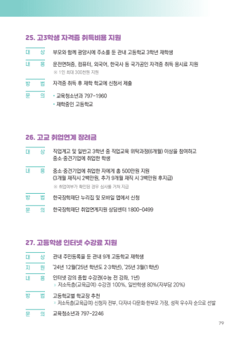 7925. %uace03%ud559%uc0dd %uc790%uaca9%uc99d %ucde8%ub4dd%ube44%uc6a9 %uc9c0%uc6d0%ub300 %u0009 %uc0c1 %ubd80%ubaa8%uc640 %ud568%uaed8 %uad11%uc591%uc2dc%uc5d0 %uc8fc%uc18c%ub97c %ub454 %uad00%ub0b4 %uace0%ub4f1%ud559%uad50 3%ud559%ub144 %uc7ac%ud559%uc0dd%ub0b4%u0009 %uc6a9 %uc6b4%uc804%uba74%ud5c8%uc99d, %ucef4%ud4e8%ud130, %uc678%uad6d%uc5b4, %ud55c%uad6d%uc0ac %ub4f1 %uad6d%uac00%uacf5%uc778 %uc790%uaca9%uc99d %ucde8%ub4dd %uc751%uc2dc%ub8cc %uc9c0%uc6d0%u203b 1%uc778 %ucd5c%ub300 300%ucc9c%uc6d0 %uc9c0%uc6d0%ubc29 %u0009 %ubc95 %uc790%uaca9%uc99d %ucde8%ub4dd %ud6c4 %uc7ac%ud559 %ud559%uad50%uc5d0 %uc2e0%uccad%uc11c %uc81c%ucd9c%ubb38%u0009 %uc758 %u2022 %uad50%uc721%uccad%uc18c%ub144%uacfc 797-1960%u2022 %uc7ac%ud559%uc911%uc778 %uace0%ub4f1%ud559%uad5026. %uace0%uad50 %ucde8%uc5c5%uc5f0%uacc4 %uc7a5%ub824%uae08%ub300%u0009 %uc0c1 %uc9c1%uc5c5%uacc4%uace0 %ubc0f %uc77c%ubc18%uace0 3%ud559%ub144 %uc911 %uc9c1%uc5c5%uad50%uc721 %uc704%ud0c1%uacfc%uc815(6%uac1c%uc6d4) %uc774%uc0c1%uc744 %ucc38%uc5ec%ud558%uace0 %uc911%uc18c%u00b7%uc911%uacac%uae30%uc5c5%uc5d0 %ucde8%uc5c5%ud55c %ud559%uc0dd%ub0b4 %u0009 %uc6a9 %uc911%uc18c%u00b7%uc911%uacac%uae30%uc5c5%uc5d0 %ucde8%uc5c5%ud55c %uc790%uc5d0%uac8c %ucd1d 500%ub9cc%uc6d0 %uc9c0%uc6d0(3%uac1c%uc6d4 %uc7ac%uc9c1%uc2dc 2%ubc31%ub9cc%uc6d0, %ucd94%uac00 9%uac1c%uc6d4 %uc7ac%uc9c1 %uc2dc 3%ubc31%ub9cc%uc6d0 %ud6c4%uc9c0%uae09)%u203b %ucde8%uc5c5%uc5ec%ubd80%uac00 %ud655%uc778%ub41c %uacbd%uc6b0 %uc2ec%uc0ac%ub97c %uac70%uccd0 %uc9c0%uae09%ubc29 %u0009 %ubc95 %ud55c%uad6d%uc7a5%ud559%uc7ac%ub2e8 %ub204%ub9ac%uc9d1 %ubc0f %ubaa8%ubc14%uc77c %uc571%uc5d0%uc11c %uc2e0%uccad%ubb38 %u0009 %uc758 %ud55c%uad6d%uc7a5%ud559%uc7ac%ub2e8 %ucde8%uc5c5%uc5f0%uacc4%uc9c0%uc6d0 %uc0c1%ub2f4%uc13c%ud130 1800-049927. %uace0%ub4f1%ud559%uc0dd %uc778%ud130%ub137 %uc218%uac15%ub8cc %uc9c0%uc6d0%ub300 %uc0c1 %uad00%ub0b4 %uc8fc%ubbfc%ub4f1%ub85d%uc744 %ub454 %uad00%ub0b4 9%uac1c %uace0%ub4f1%ud559%uad50 %uc7ac%ud559%uc0dd%uc9c0 %uc6d0 '24%ub144 12%uc6d4('25%ub144 %ud559%ub144%ub3c4 2%u00b73%ud559%ub144), '25%ub144 3%uc6d4(1%ud559%ub144) %ub0b4 %uc6a9 %uc778%ud130%ub137 %uac15%uc758 %uc885%ud569 %uc218%uac15%uad8c(%uc218%ub2a5 %uc804 %uac15%uc88c, 1%ub144)%u00bb %uc800%uc18c%ub4dd%uce35(%uad50%uc721%uae09%uc5ec) %uc218%uac15%uad8c 100%, %uc77c%ubc18%ud559%uc0dd 80%(%uc790%ubd80%ub2f4 20%)%ubc29 %ubc95 %uace0%ub4f1%ud559%uad50%ubcc4 %ud559%uad50%uc7a5 %ucd94%ucc9c%u00bb %uc800%uc18c%ub4dd%uce35(%uad50%uc721%uae09%uc5ec) %uc2e0%uccad%uc790 %uc804%ubd80, %ub2e4%uc790%ub140%u00b7%ub2e4%ubb38%ud654%u00b7%ud55c%ubd80%ubaa8 %uac00%uc815, %uc131%uc801 %uc6b0%uc218%uc790 %uc21c%uc73c%ub85c %uc120%ubc1c%ubb38 %uc758 %uad50%uc721%uccad%uc18c%ub144%uacfc 797-2246