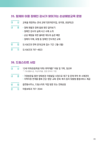 8535. %ud720%uccb4%uc5b4 %uc774%uc6a9 %uc7a5%uc560%uc778 %uac15%uc0ac%uac00 %ucc3e%uc544%uac00%ub294 %uc190%uc0c1%uc608%ubc29%uad50%uc721 %uc6b4%uc601%ub300%u0009 %uc0c1 %uad50%uc721%uc744 %ud76c%ub9dd%ud558%ub294 %uad00%ub0b4 %uad50%uc721%uae30%uad00(%uc5b4%ub9b0%uc774%uc9d1, %uc720%uce58%uc6d0, %ucd08%ub4f1%ud559%uad50)%ub0b4%u0009 %uc6a9 %u2022 %uc7a5%uc560 %ud604%ud669%uacfc %uc7a5%uc560 %ubc1c%uc0dd %uc6d0%uc778 %uc54c%uc544%ubcf4%uae30%u2022 %uc7a5%uc560%uc778 %uac15%uc0ac%uc758 %uc2e4%uc81c %uc0ac%uace0 %uc0ac%ub840 %uc18c%uac1c%u2022 %uc190%uc0c1 %uc608%ubc29%uc744 %uc704%ud55c %uc62c%ubc14%ub978 %ud0dc%ub3c4%uc640 %uc2b5%uad00 %ubc30%uc591%u2022 %uc7a5%uc560%uc758 %uc774%ud574, %uc720%ud615 %ub4f1 %uc7a5%uc560%uc778 %uc778%uc2dd%uac1c%uc120 %uad50%uc721%ubc29%u0009 %ubc95 %ub3c4%uc2dc%ubcf4%uac74%uacfc %uc5f0%ub77d %ubb38%uc758(%uad50%uc721 %uc811%uc218 %uae30%uac04: 2%uc6d4~3%uc6d4)%ubb38%u0009 %uc758 %ub3c4%uc2dc%ubcf4%uac74%uacfc 797-482336. %ub4dc%ub9bc%uc2a4%ud0c0%ud2b8 %uc0ac%uc5c5%ub300%u0009 %uc0c1 12%uc138 %uc774%ud558(%ucd08%ub4f1%ud559%uc0dd %uc774%ud558) %ucde8%uc57d%uacc4%uce35* %uc544%ub3d9 %ubc0f %uac00%uc871, %uc784%uc0b0%ubd80* %uae30%ucd08%uc0dd%ud65c%uc218%uae09, %ucc28%uc0c1%uc704%uacc4%uce35, %ubc95%uc815 %ud55c%ubd80%ubaa8 %uac00%uc815%ub0b4%u0009 %uc6a9 %u2022 %uac00%uc815%ubc29%ubb38%uc744 %ud1b5%ud55c %uc591%uc721%ud658%uacbd%u2027%uc544%ub3d9%ubc1c%ub2ec %uc0ac%uc815%uc73c%ub85c %uc695%uad6c %ubc0f %ubb38%uc81c %ud30c%uc545 %ud6c4 %uc0ac%ub840%uad00%ub9ac%u2022 %uc9c0%uc5ed%uc790%uc6d0 %uc5f0%uacc4%ub97c %ud1b5%ud574 %uac74%uac15%u2027%uc601%uc591%u2027%uad50%uc721%u2027%ubb38%ud654%u2027%ubcf5%uc9c0 %ub4f1%uc758 %ub9de%ucda4%ud615 %ud1b5%ud569%uc11c%ube44%uc2a4 %uc81c%uacf5%ubc29%u0009 %ubc95 %uc74d%uba74%ub3d9%uc0ac%ubb34%uc18c, %ub4dc%ub9bc%uc2a4%ud0c0%ud2b8 %uc9c1%uc811 %ubc29%ubb38 %ub610%ub294 %uc804%ud654%uc0c1%ub2f4%ubb38%u0009 %uc758 %uc544%ub3d9%ubcf4%uc721%uacfc 797-3544