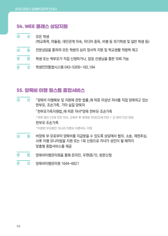 2025 %uad11%uc591%uc2dc %uc0dd%uc560%ubcf5%uc9c0%uc815%ucc45 %uc548%ub0b4%uc11c9454. WEE %ud074%ub798%uc2a4 %uc0c1%ub2f4%uc9c0%uc6d0%ub300%u0009 %uc0c1 %ubaa8%ub4e0 %ud559%uc0dd(%ud559%uad50%ud3ed%ub825, %ub530%ub3cc%ub9bc, %ub300%uc778%uad00%uacc4 %ubbf8%uc219, %ubbf8%ub514%uc5b4 %uc911%ub3c5, %ube44%ud589 %ub4f1 %uc704%uae30%ud559%uc0dd %ubc0f %uc77c%ubc18 %ud559%uc0dd %ub4f1)%ub0b4 %u0009 %uc6a9 %uc804%ubb38%uc0c1%ub2f4%uc744 %ud1b5%ud558%uc5ec %ubaa8%ub4e0 %ud559%uc0dd%uc758 %uc2ec%ub9ac %uc815%uc11c%uc801 %uc9c0%uc6d0 %ubc0f %ud559%uad50%uc0dd%ud65c %uc801%uc751%ub825 %uc81c%uace0 %ubc29%u0009 %ubc95 %ud559%uc0dd %ub610%ub294 %ud559%ubd80%ubaa8%uac00 %uc9c1%uc811 %uc2e0%uccad%ud558%uac70%ub098, %ub2f4%uc784 %uc120%uc0dd%ub2d8%uc744 %ud1b5%ud55c %uc758%ub8b0 %uac00%ub2a5 %ubb38 %u0009 %uc758 %ud559%uc0dd%uc548%uc804%ud1b5%ud569%uc2dc%uc2a4%ud15c 043-5309-182,18455. %uc591%uc721%ube44 %uc774%ud589 %uc6d0%uc2a4%ud1b1 %uc885%ud569%uc11c%ube44%uc2a4%ub300%u0009 %uc0c1 %u300c%uc591%uc721%ube44 %uc774%ud589%ud655%ubcf4 %ubc0f %uc9c0%uc6d0%uc5d0 %uad00%ud55c %ubc95%ub960%u300d%uc5d0 %ub530%ub978 %ubbf8%uc131%ub144 %uc790%ub140%ub97c %uc9c1%uc811 %uc591%uc721%ud558%uace0 %uc788%ub294 %ud55c%ubd80%ubaa8, %uc870%uc190%uac00%uc871, %uae30%ud0c0 %uc2e4%uc9c8 %uc591%uc721%uc790%u300c%ud55c%ubd80%ubaa8%uac00%uc871%uc9c0%uc6d0%ubc95%u300d%uc5d0 %ub530%ub978 %uc790%ub140*%uc591%uc721 %ud55c%ubd80%ubaa8%u00b7%uc870%uc190%uac00%uc871*%ucde8%ud559 %uc911%uc778 22%uc138 %ubbf8%ub9cc %uc790%ub140, %uad70%ubcf5%ubb34 %ud6c4 %ubcf5%ud559%ud55c %uc790%ub140(22%uc138 %ubbf8%ub9cc + %uad70 %ubcf5%ubb34%uae30%uac04) %uc591%uc721%ud55c%ubd80%ubaa8%u00b7%uc870%uc190%uac00%uc871*%uc774%ud63c%ud55c %ubd80%ubaa8%ubfd0%ub9cc %uc544%ub2c8%ub77c %ubbf8%ud63c%ubaa8%u00b7%ubbf8%ud63c%ubd80%ub3c4 %uc9c0%uc6d0 %ub0b4%u0009 %uc6a9 %ube44%uc591%uc721 %ubd80%u00b7%ubaa8%ub85c%ubd80%ud130 %uc591%uc721%ube44%ub97c %uc9c0%uae09%ubc1b%uc744 %uc218 %uc788%ub3c4%ub85d %uc0c1%ub2f4%uc5d0%uc11c %ud611%uc758, %uc18c%uc1a1, %ucc44%uad8c%ucd94%uc2ec, %uc0ac%ud6c4 %uc774%ud589 %ubaa8%ub2c8%ud130%ub9c1%uc744 %uc9c0%uc6d0 %ub610%ub294 1%ud68c %uc2e0%uccad%uc73c%ub85c %uc790%ub140%uac00 %uc131%uc778%uc774 %ub420 %ub54c%uae4c%uc9c0 %ub9de%ucda4%ud615 %uc885%ud569%uc11c%ube44%uc2a4%ub97c %uc81c%uacf5%ubc29%u0009 %ubc95 %uc591%uc721%ube44%uc774%ud589%uad00%ub9ac%uc6d0%uc744 %ud1b5%ud574 %uc628%ub77c%uc778, %uc6b0%ud3b8(%ub4f1%uae30), %ubc29%ubb38%uc2e0%uccad%ubb38 %u0009 %uc758 %uc591%uc721%ube44%uc774%ud589%uad00%ub9ac%uc6d0 1644-6621