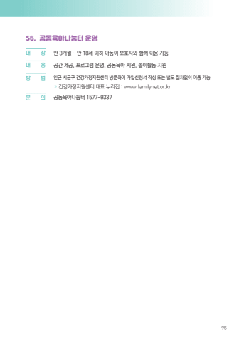 9556. %uacf5%ub3d9%uc721%uc544%ub098%ub214%ud130 %uc6b4%uc601%ub300 %u0009 %uc0c1 %ub9cc 3%uac1c%uc6d4 ~ %ub9cc 18%uc138 %uc774%ud558 %uc544%ub3d9%uc774 %ubcf4%ud638%uc790%uc640 %ud568%uaed8 %uc774%uc6a9 %uac00%ub2a5%ub0b4%u0009 %uc6a9 %uacf5%uac04 %uc81c%uacf5, %ud504%ub85c%uadf8%ub7a8 %uc6b4%uc601, %uacf5%ub3d9%uc721%uc544 %uc9c0%uc6d0, %ub180%uc774%ud65c%ub3d9 %uc9c0%uc6d0%ubc29%u0009 %ubc95 %uc778%uadfc %uc2dc%uad70%uad6c %uac74%uac15%uac00%uc815%uc9c0%uc6d0%uc13c%ud130 %ubc29%ubb38%ud558%uc5ec %uac00%uc785%uc2e0%uccad%uc11c %uc791%uc131 %ub610%ub294 %ubcc4%ub3c4 %uc808%ucc28%uc5c6%uc774 %uc774%uc6a9 %uac00%ub2a5%u00bb %uac74%uac15%uac00%uc815%uc9c0%uc6d0%uc13c%ud130 %ub300%ud45c %ub204%ub9ac%uc9d1 : www.familynet.or.kr %ubb38%u0009 %uc758 %uacf5%ub3d9%uc721%uc544%ub098%ub214%ud130 1577-9337